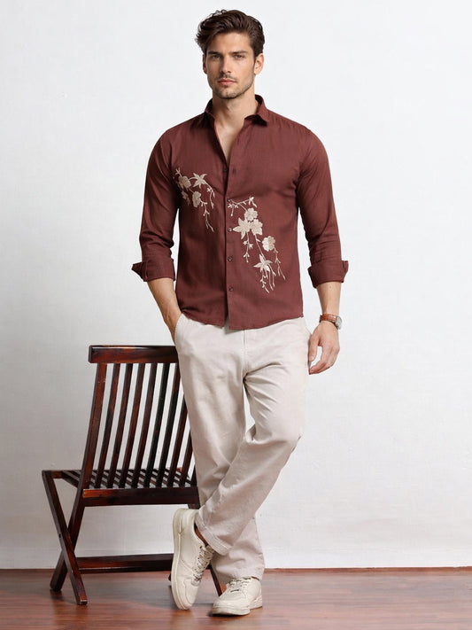 -59% OFFMen's Linen Maroon Floral Embroidery