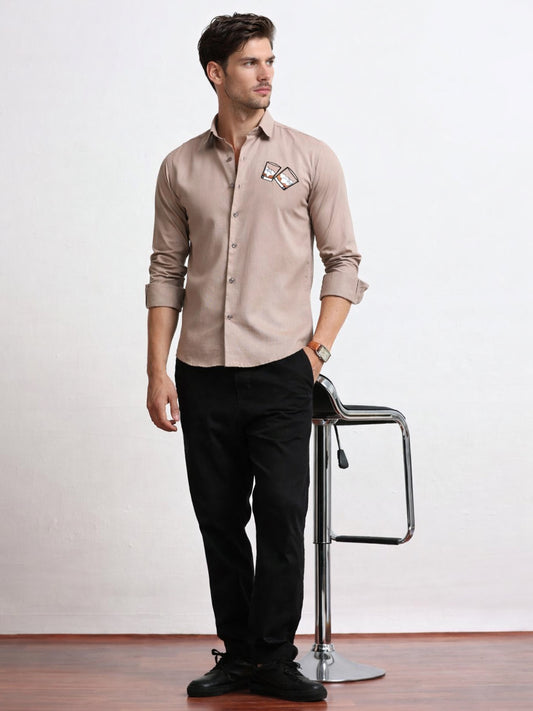 Men’s Linen Khaki Brown Slim-Fit Casual Trousers– Black Thread