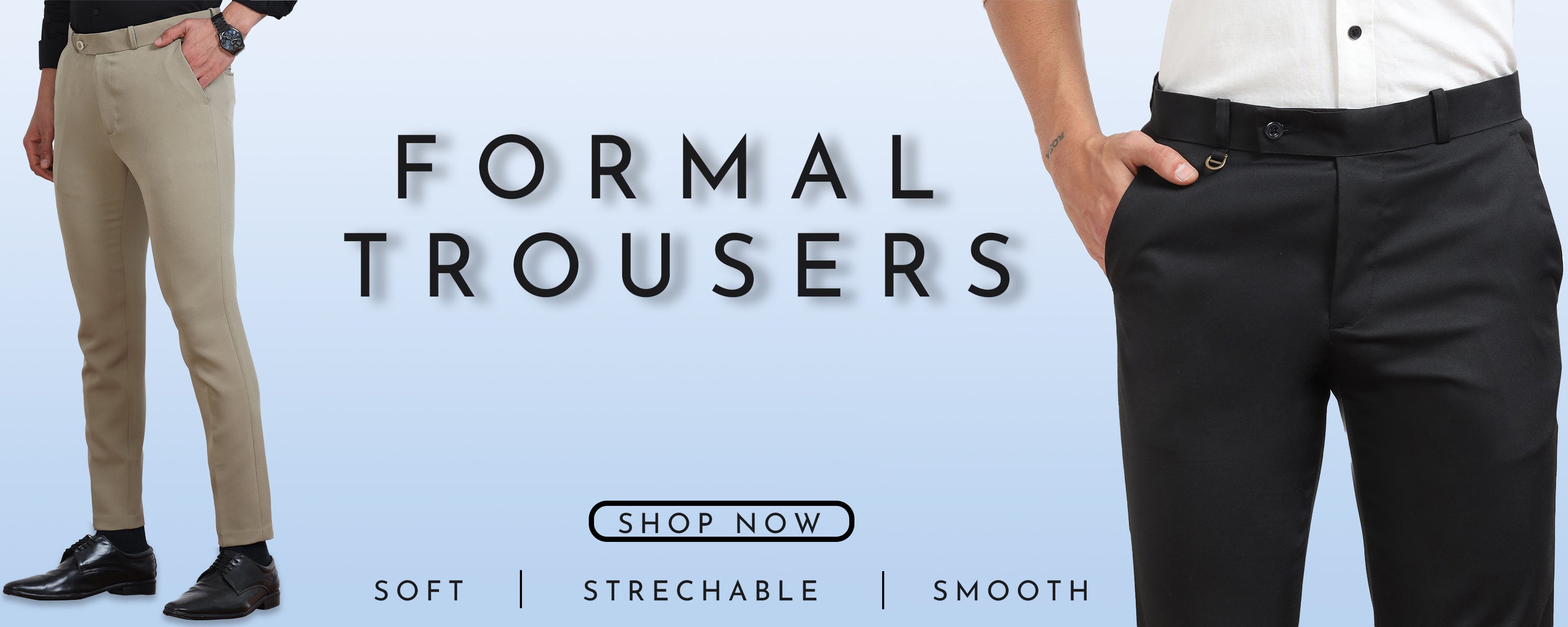 Men's Light Blue Formal Regular Fit Trousers