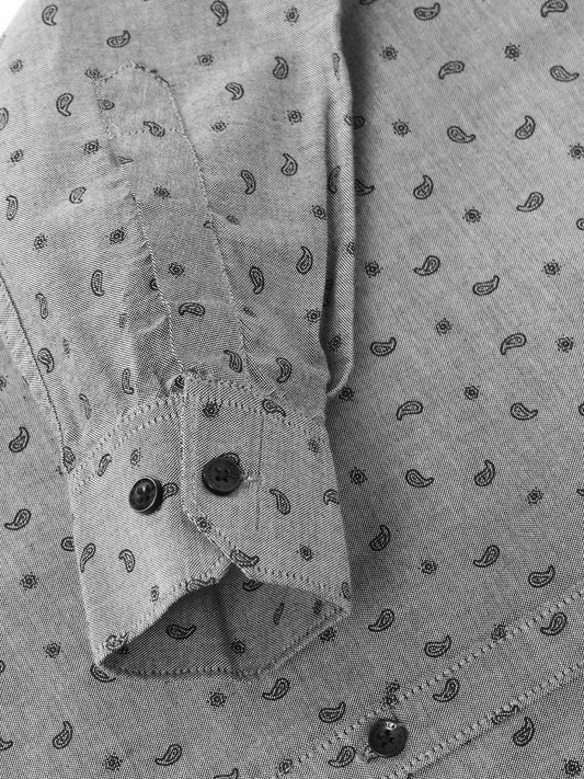 Men’s Grey Micro Printed Slim Fit Casual Shirt By Black Thread