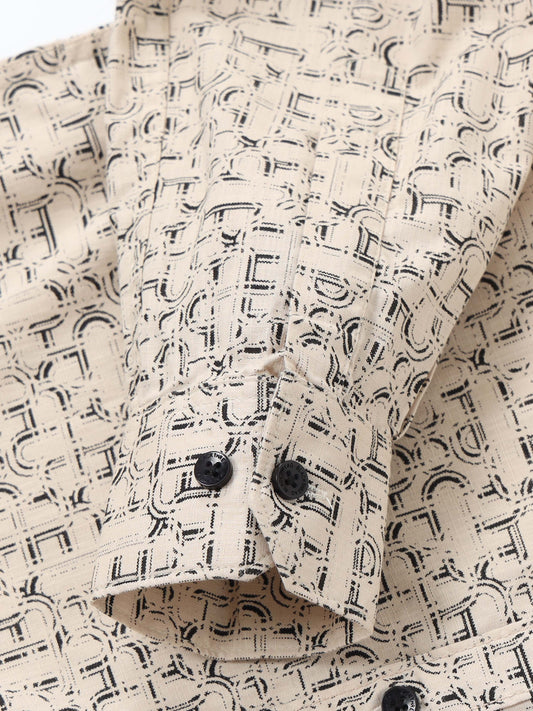 Men’s Beige Abstract Printed Slim Fit Casual Shirt By Black Thread