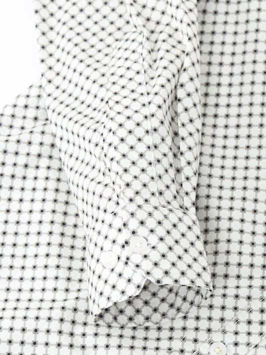 Men’s White & Black Geometric Printed Slim Fit Casual Shirt By Black Thread