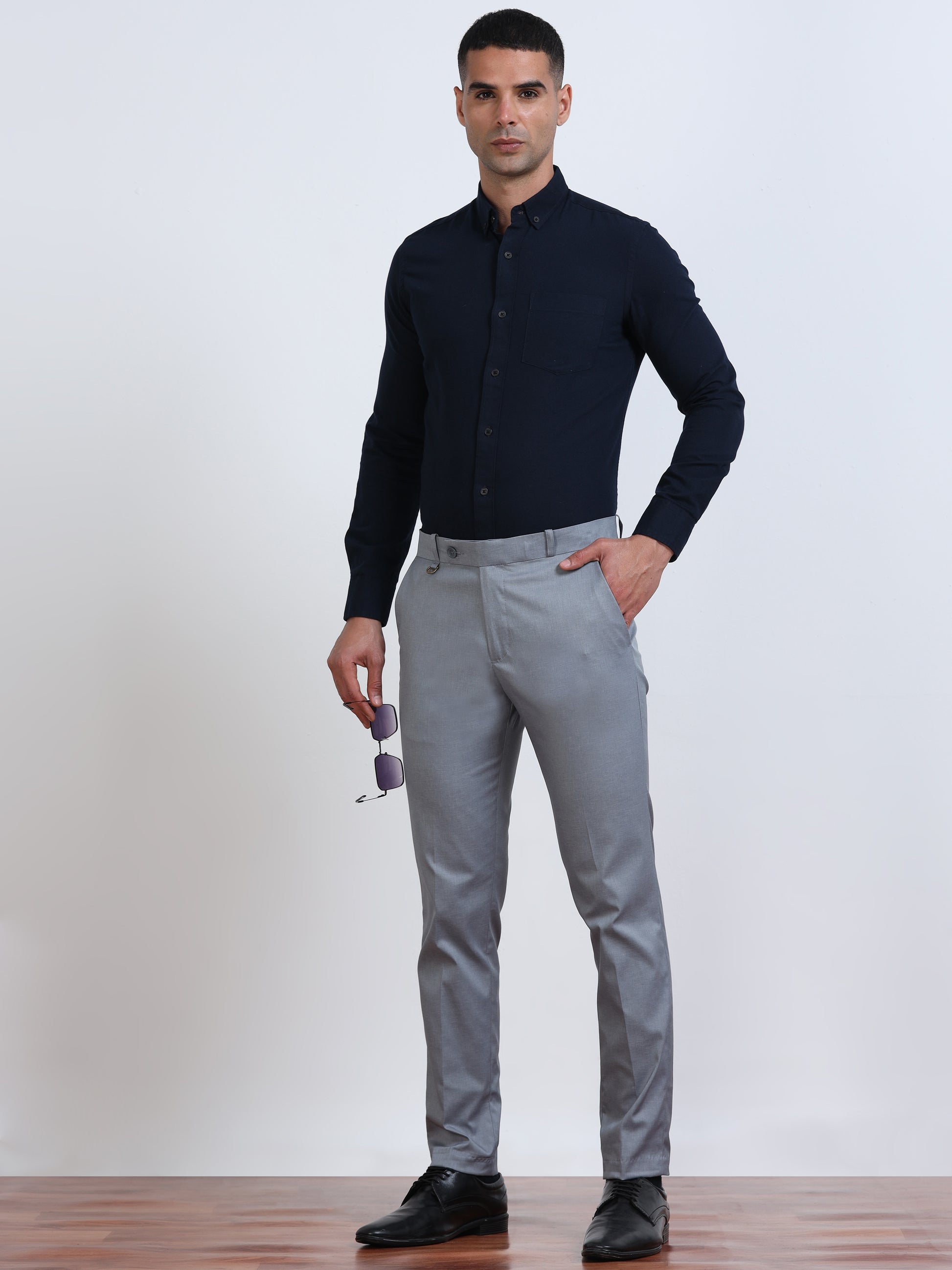 Men's Light Blue Formal Regular Fit Trousers