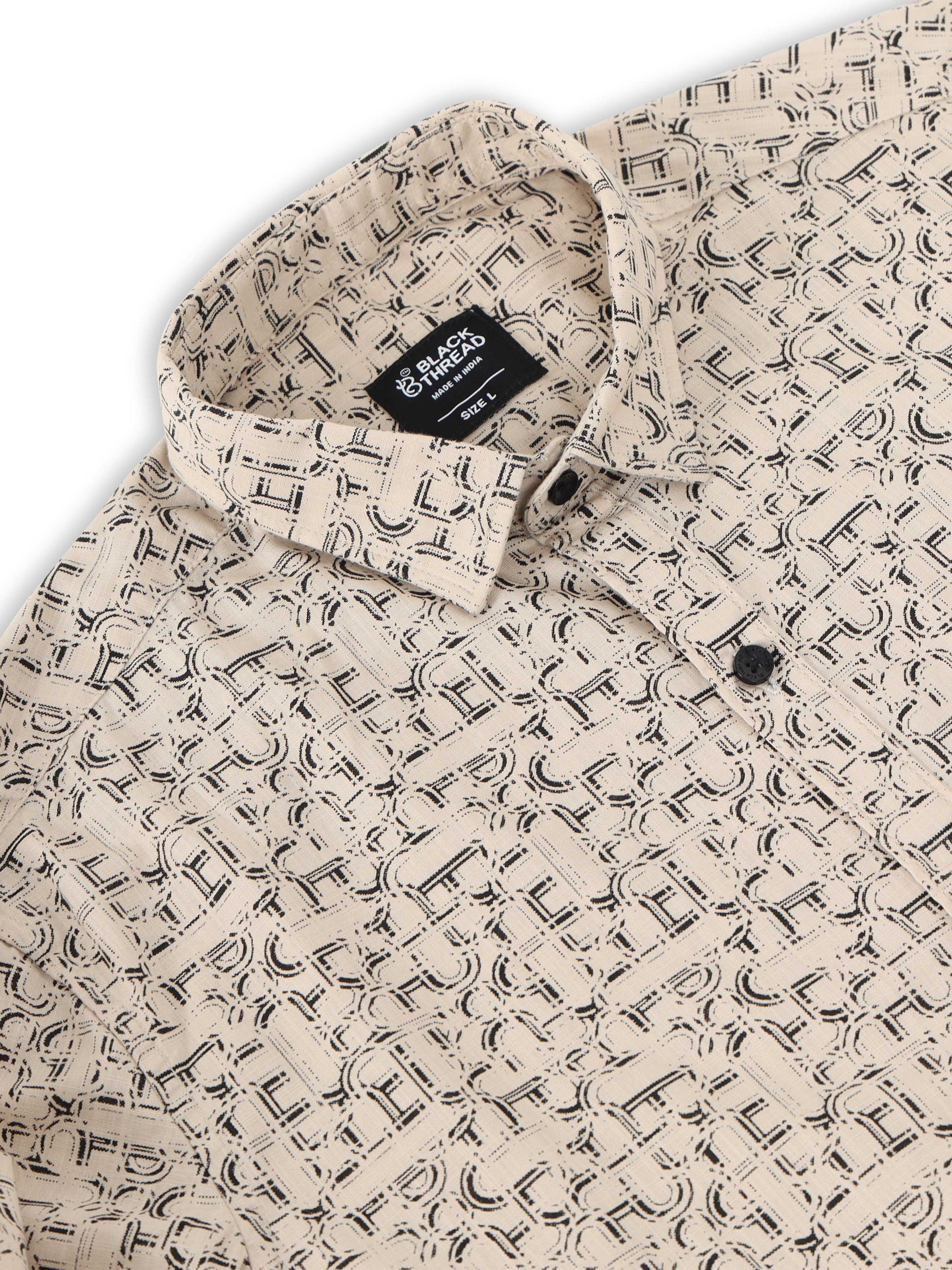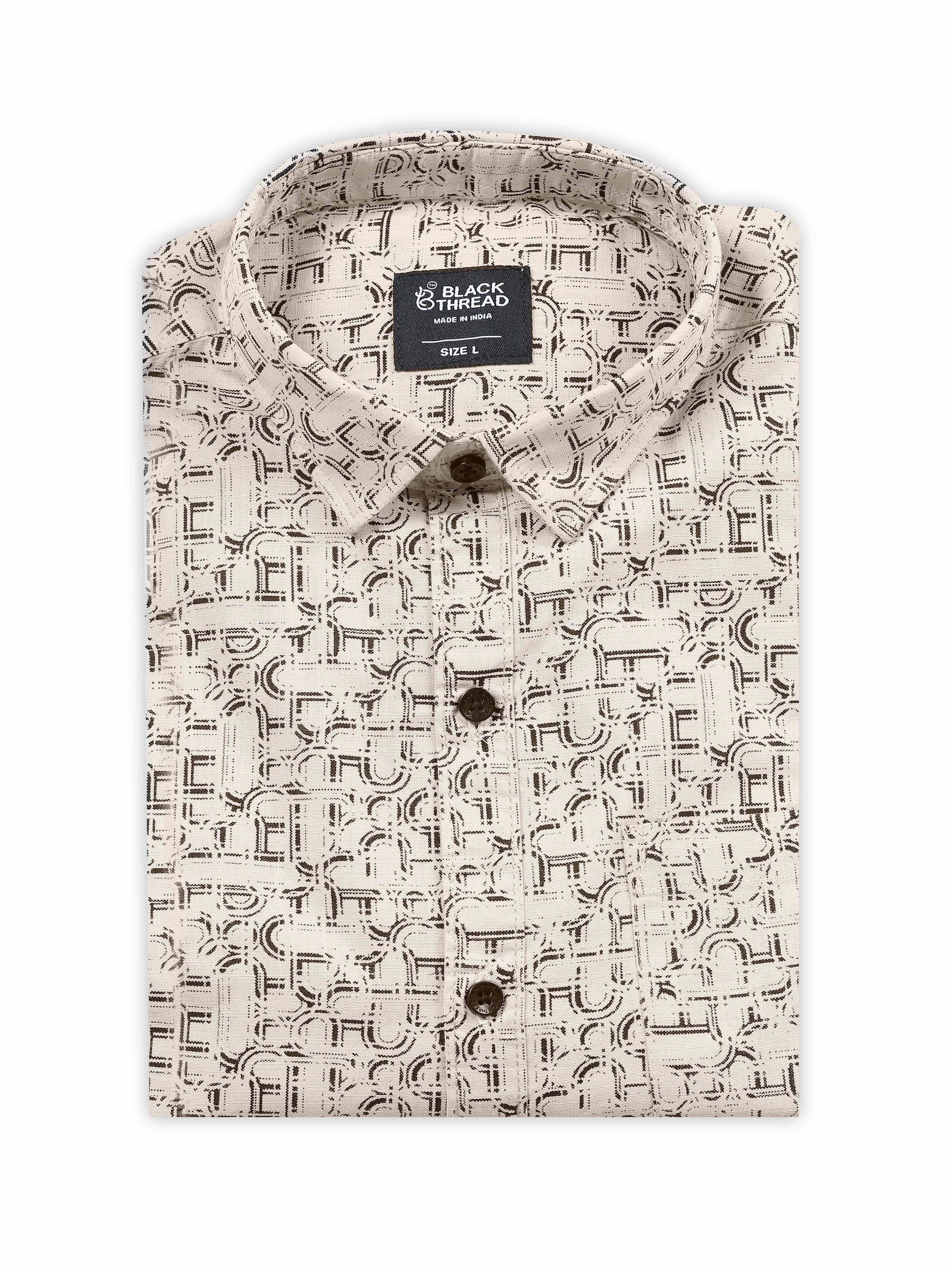 Men’s Beige Abstract Printed Slim Fit Casual Shirt By Black Thread