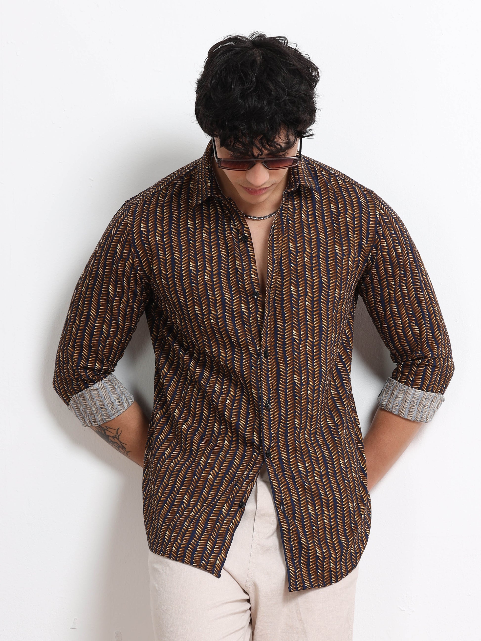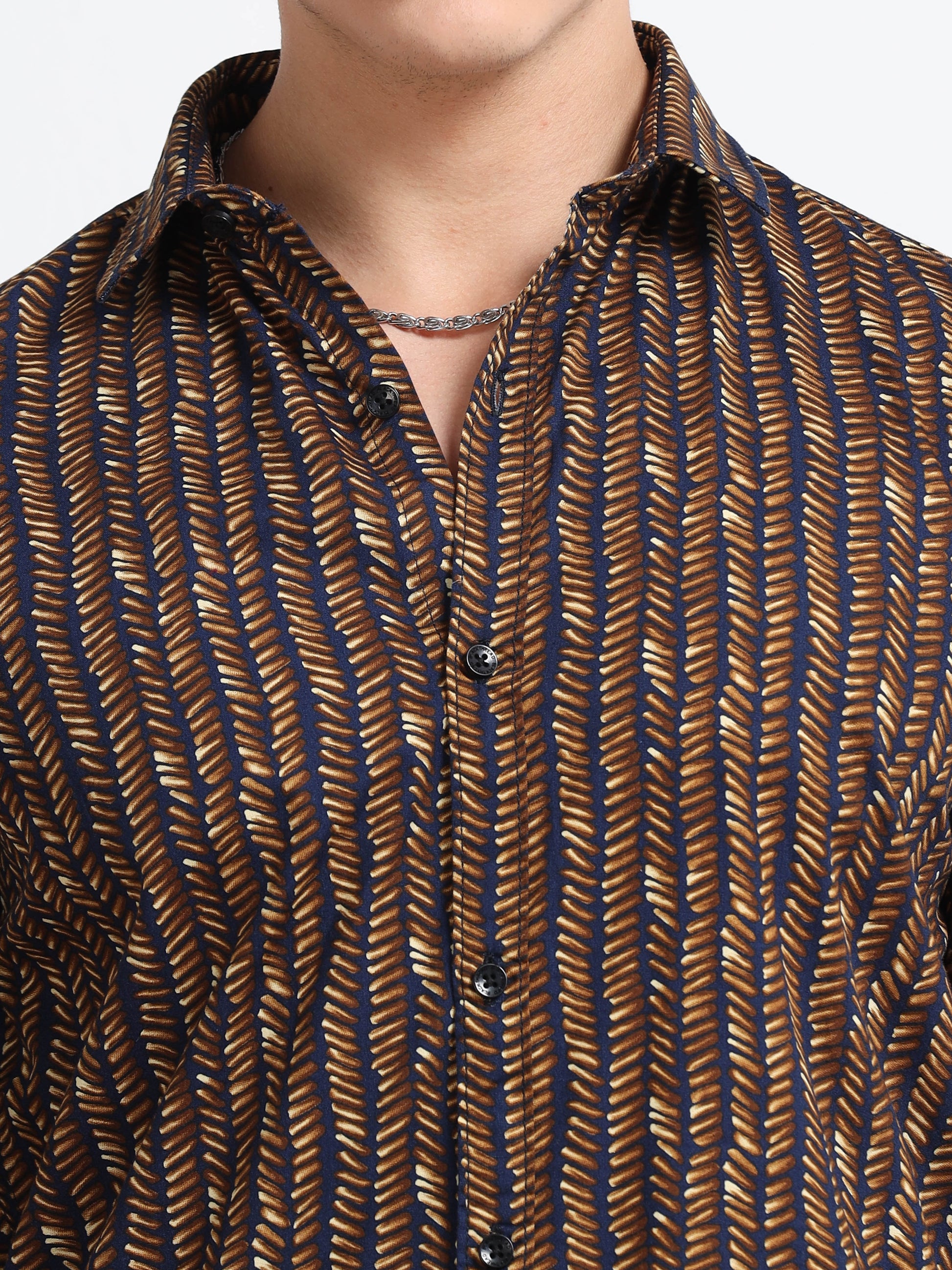 A perfect mix of modern and classy — the Men’s Black & Mustard Geometric Printed Cotton Shirt by Black Thread delivers confident style with ease. Made from soft, breathable cotton, this shirt features a sleek black base adorned with mustard geometric prints for that subtle yet standout vibe. With a slim-fit silhouette, button closure, and roll-up sleeve detail, it’s the ultimate pick for evening outings, dinners, and casual Fridays.