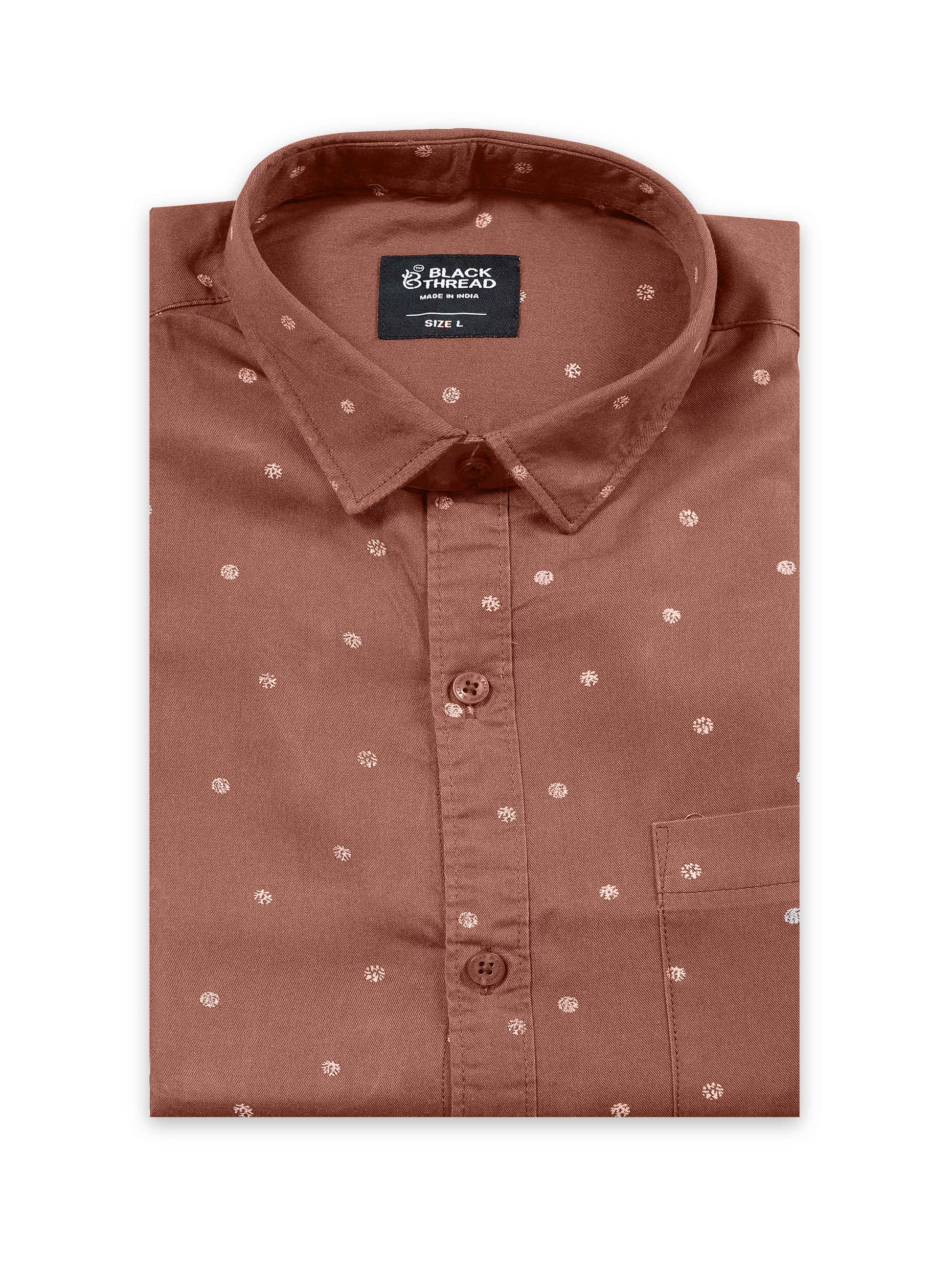 Effortlessly stylish, this Men’s Brown Micro-Printed Cotton Shirt by Black Thread is designed for comfort with a touch of modern flair. Crafted from premium breathable cotton, it ensures ease of wear while keeping you looking sharp all day. The warm brown base with minimal white micro-print detailing gives it a trendy yet understated appeal. Finished with slim-fit tailoring, button-down front, and contrast roll-up cuffs, this shirt is perfect for casual outings, office wear, or weekend gatherings.