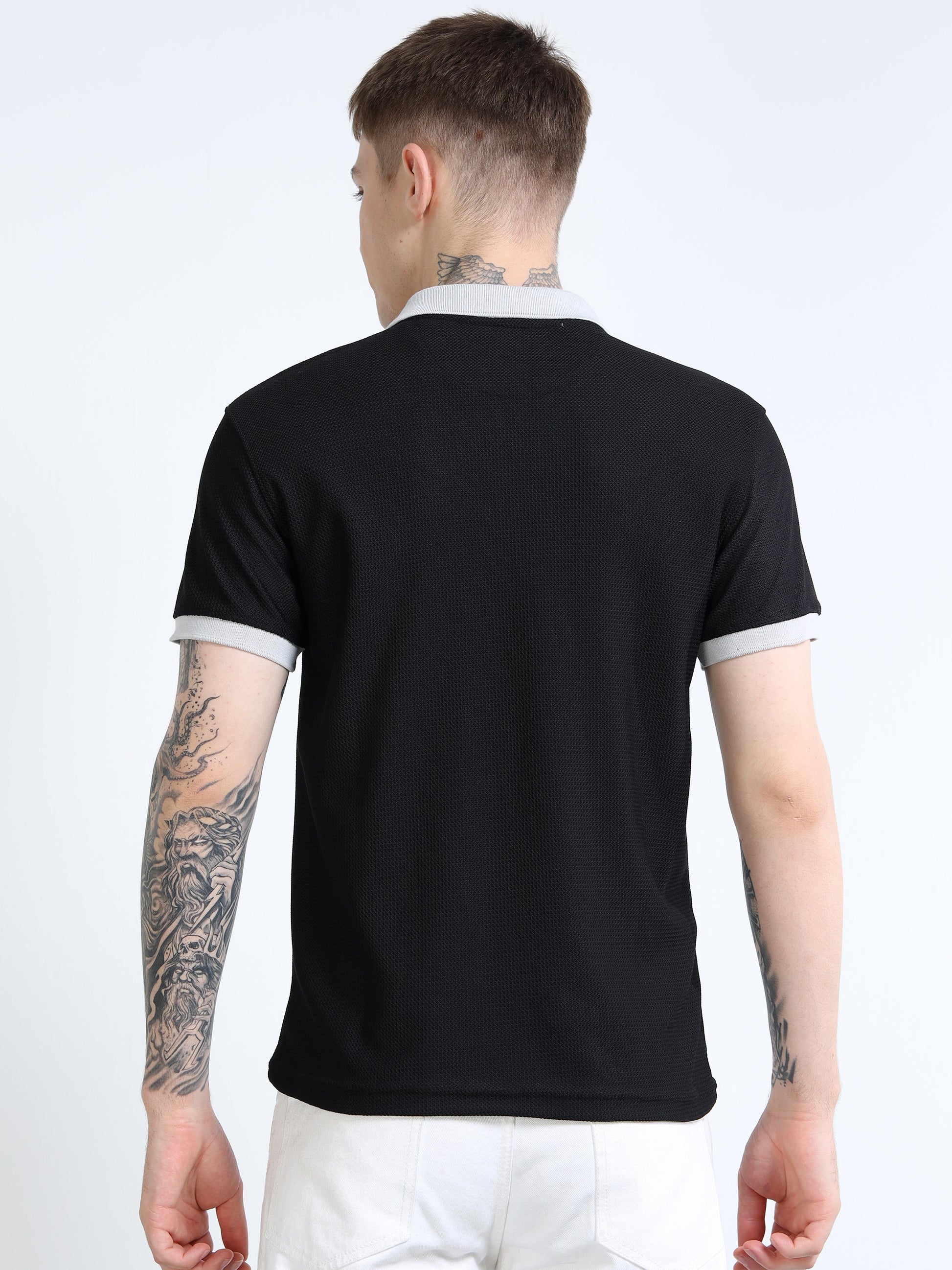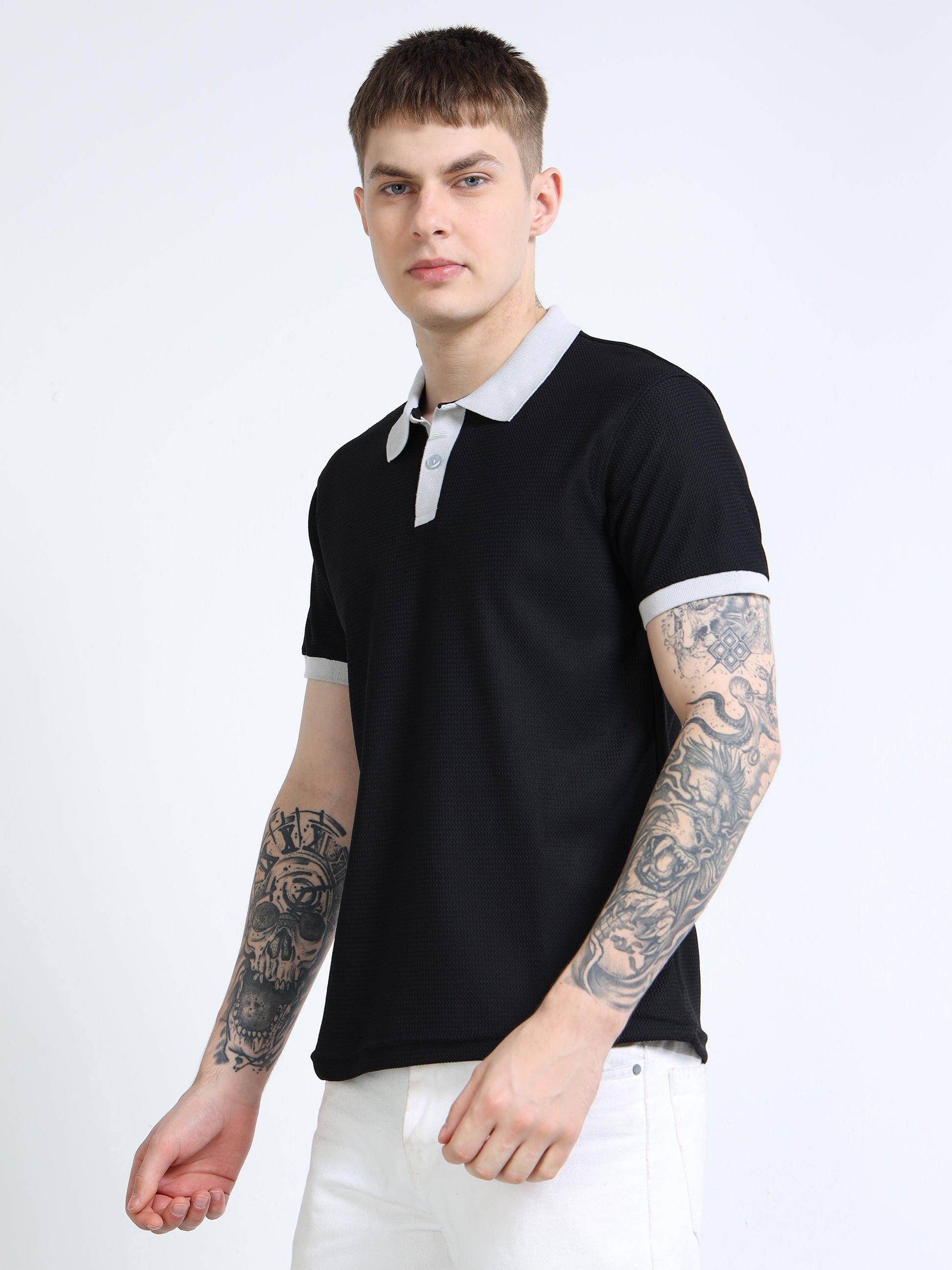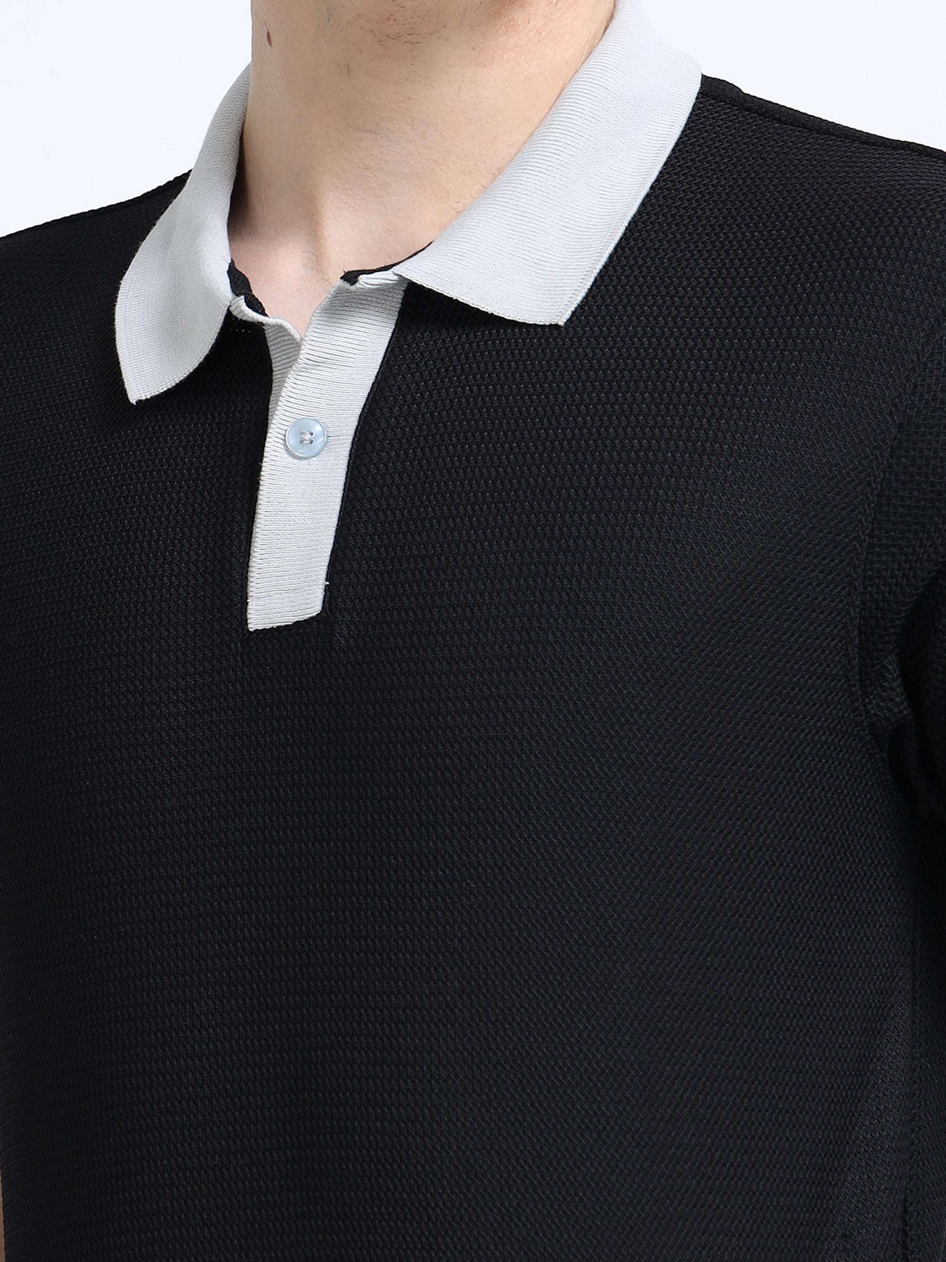 Men’s Contrast-Collar Textured Polo by Black Thread