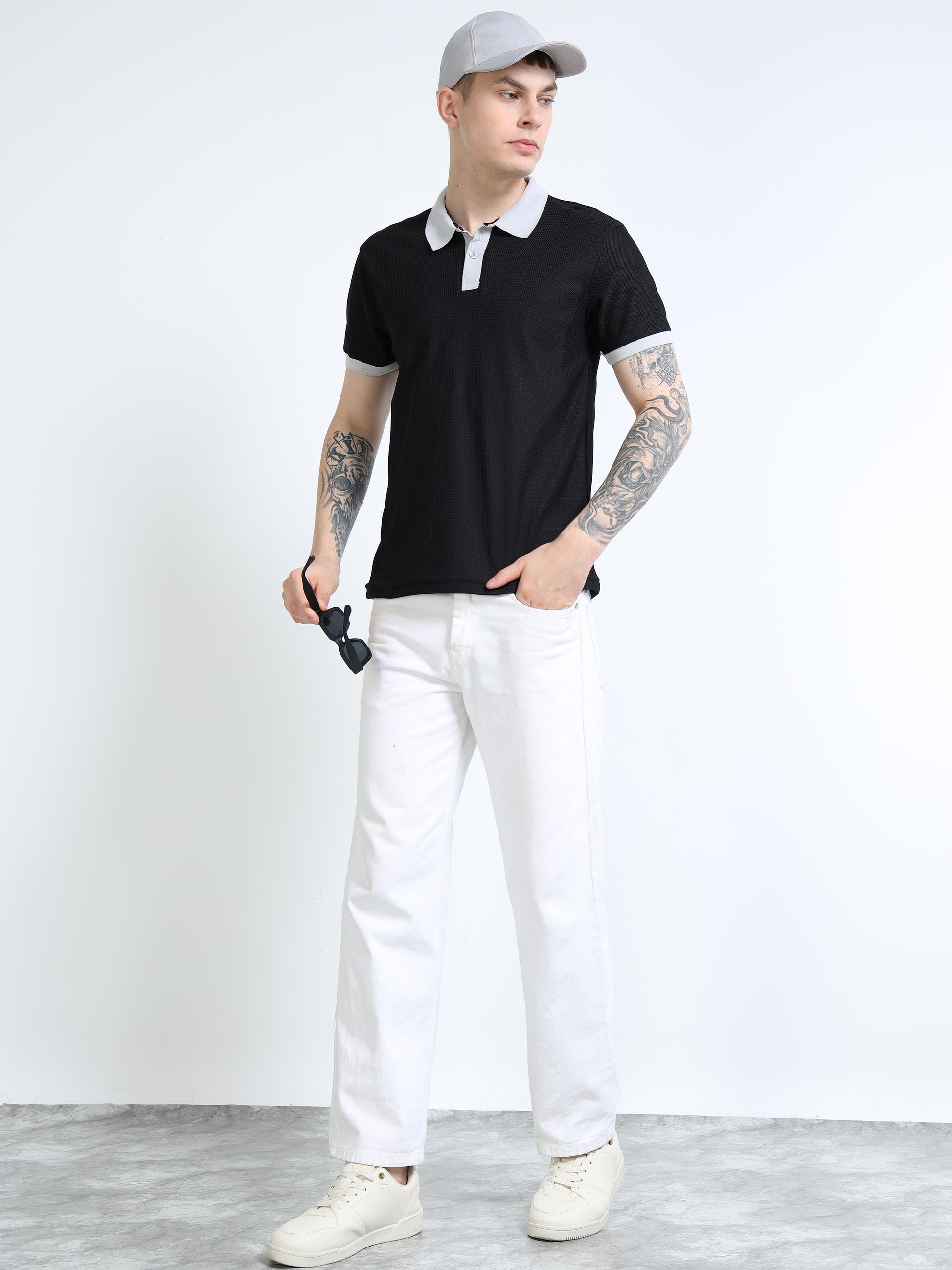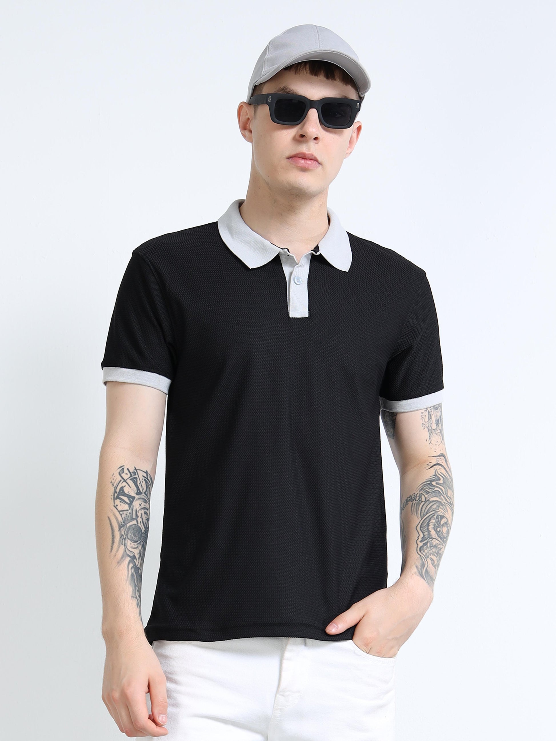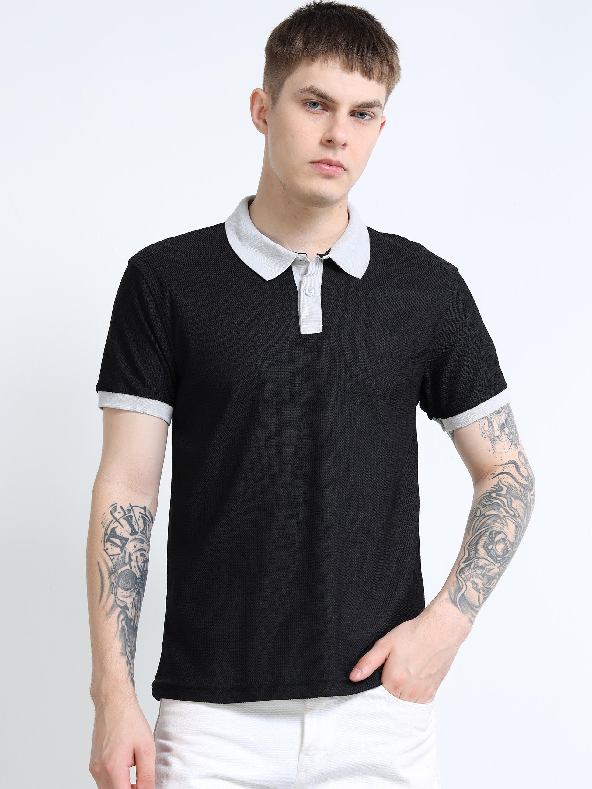 Men’s Contrast-Collar Textured Polo by Black Thread