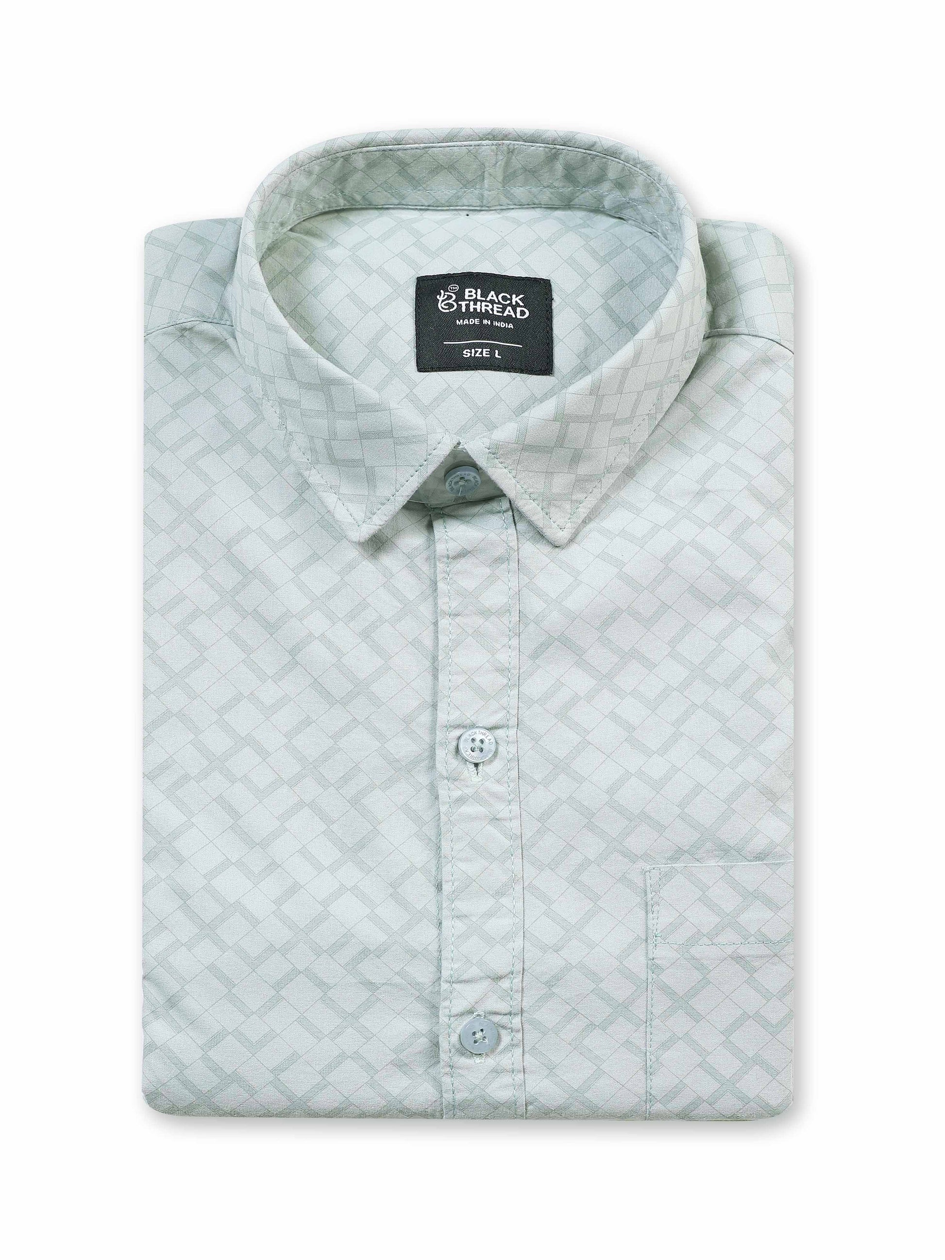 Subtle yet stylish, this Men’s Light Green Printed Cotton Shirt by Black Thread is perfect for a refined everyday look. Made from premium breathable cotton, it offers comfort and ease while maintaining a smart silhouette. The soft green base is highlighted with a delicate all-over print, giving it a minimal yet trendy appeal. With slim-fit tailoring, a chest pocket, and button-down front, this shirt pairs effortlessly with jeans, chinos, or trousers for versatile styling.