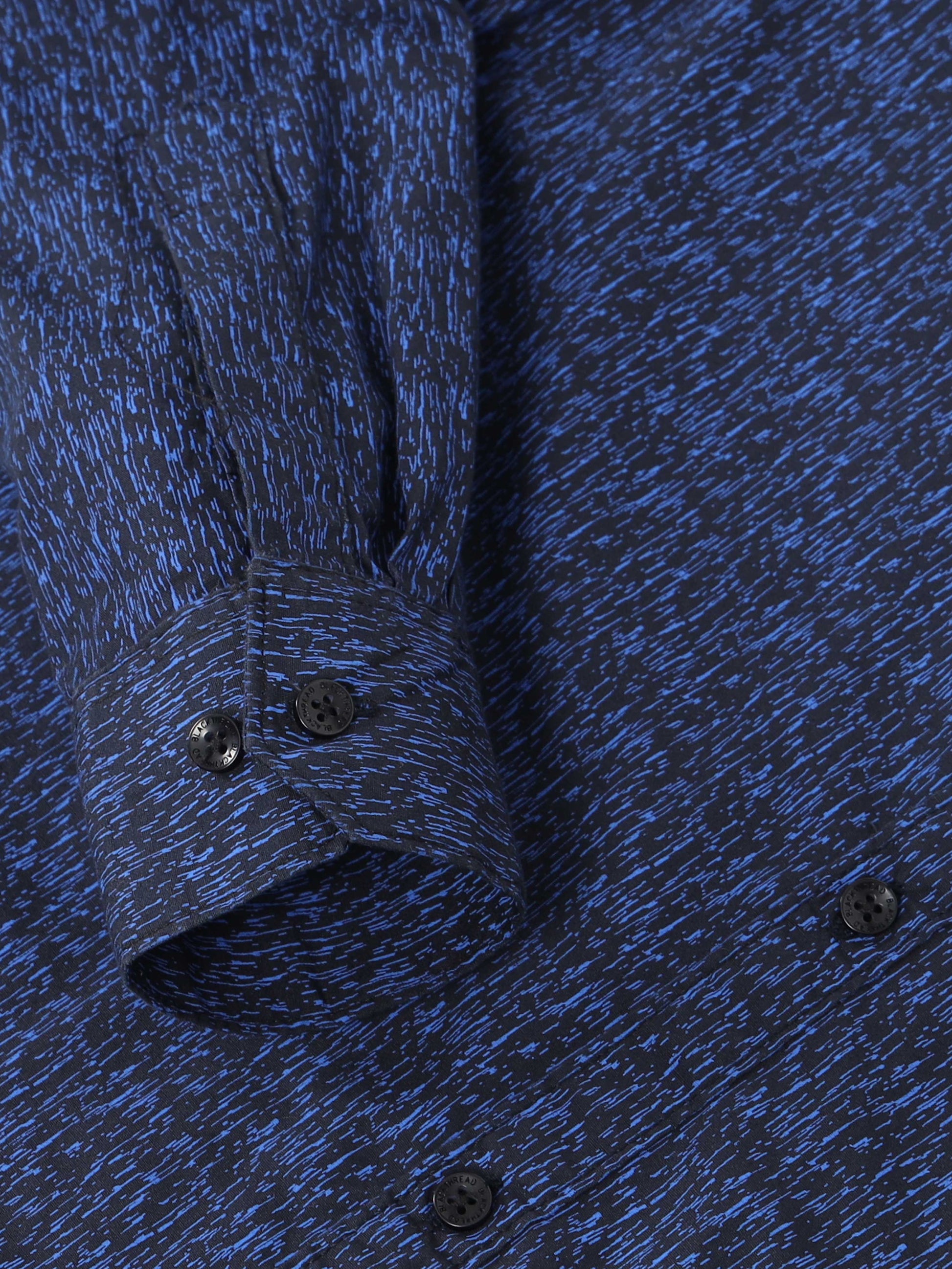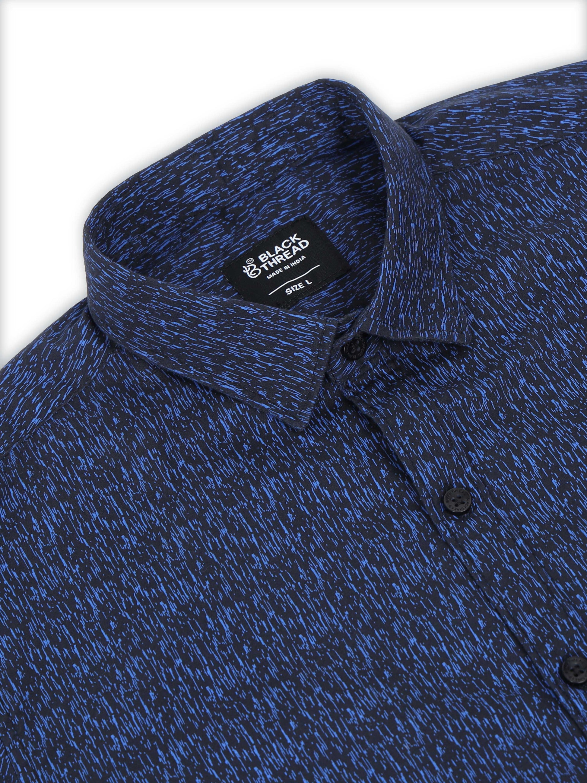 Refined and versatile, this Men’s Navy Blue Printed Cotton Shirt by Black Thread is designed for the modern man who values comfort with style. Crafted from breathable premium cotton, it ensures ease of wear while delivering a polished look. The deep navy base with subtle tonal print creates a sophisticated vibe, perfect for both office and casual evenings. With slim-fit tailoring, a button-down front, and contrast inner cuffs, this shirt effortlessly complements chinos, trousers, or jeans.