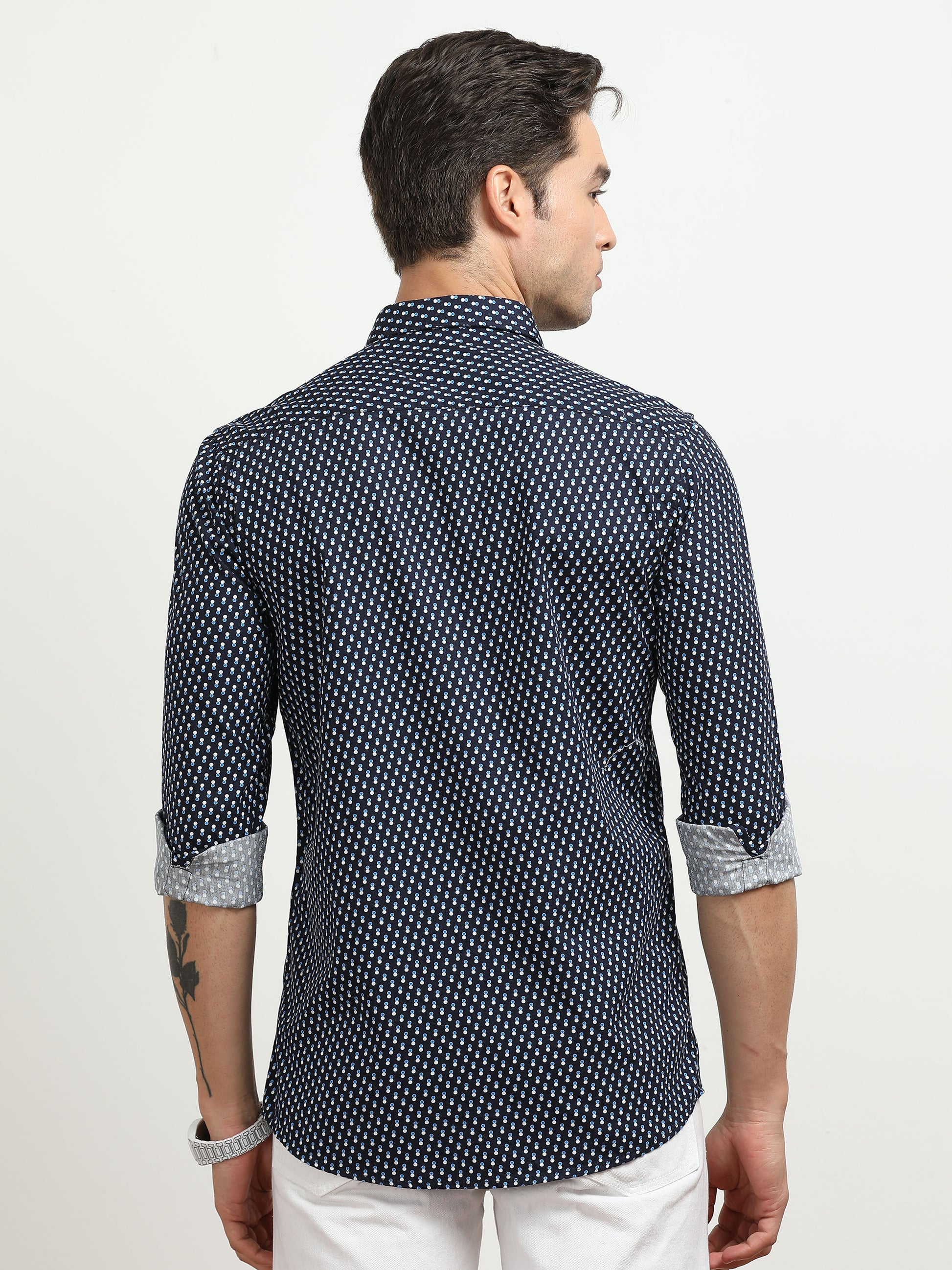Men’s Navy Blue Geometric Printed Slim Fit Shirt By Black Thread