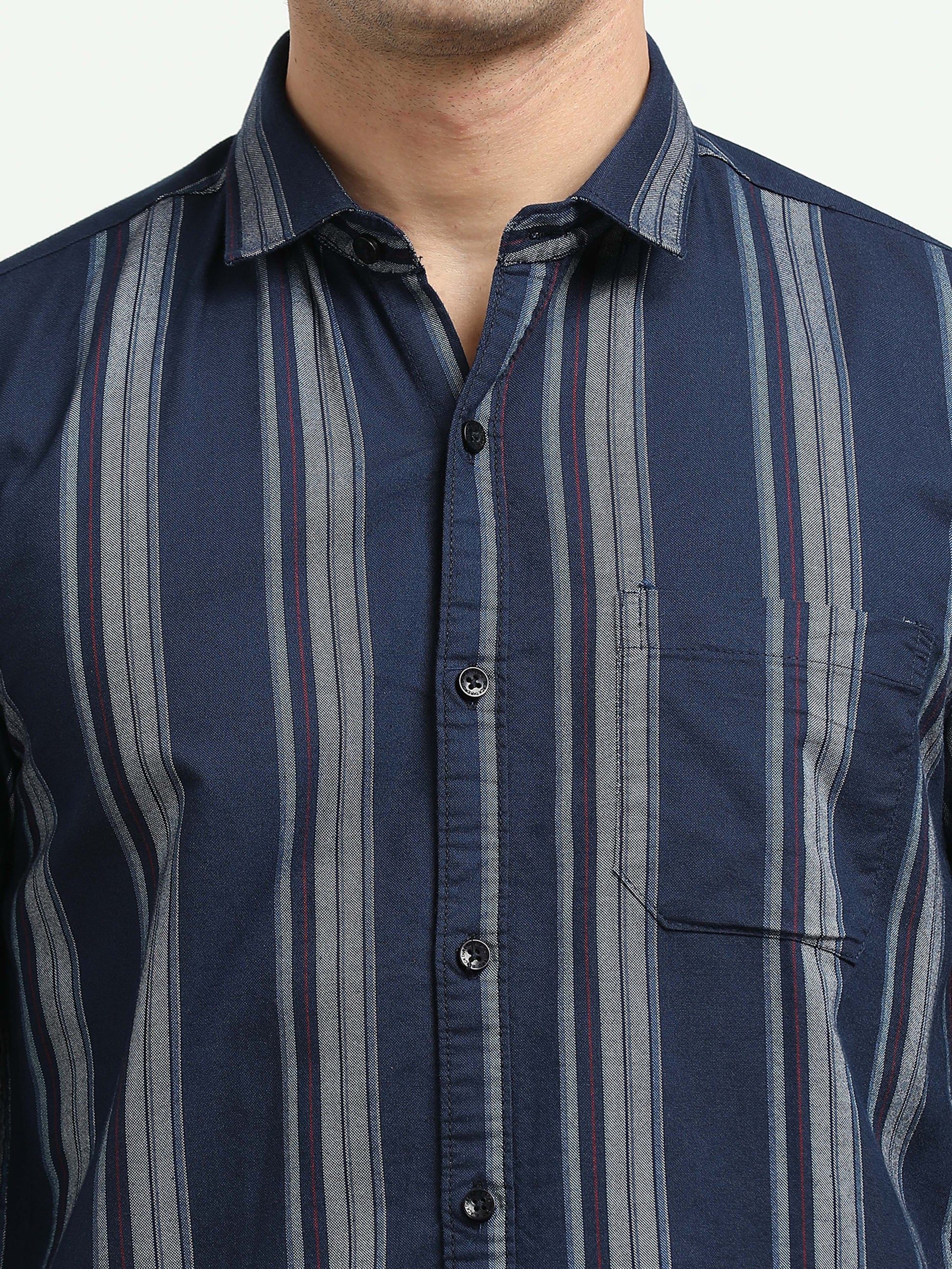 Men’s Navy Blue Vertical Striped Casual Shirt By Black Thread