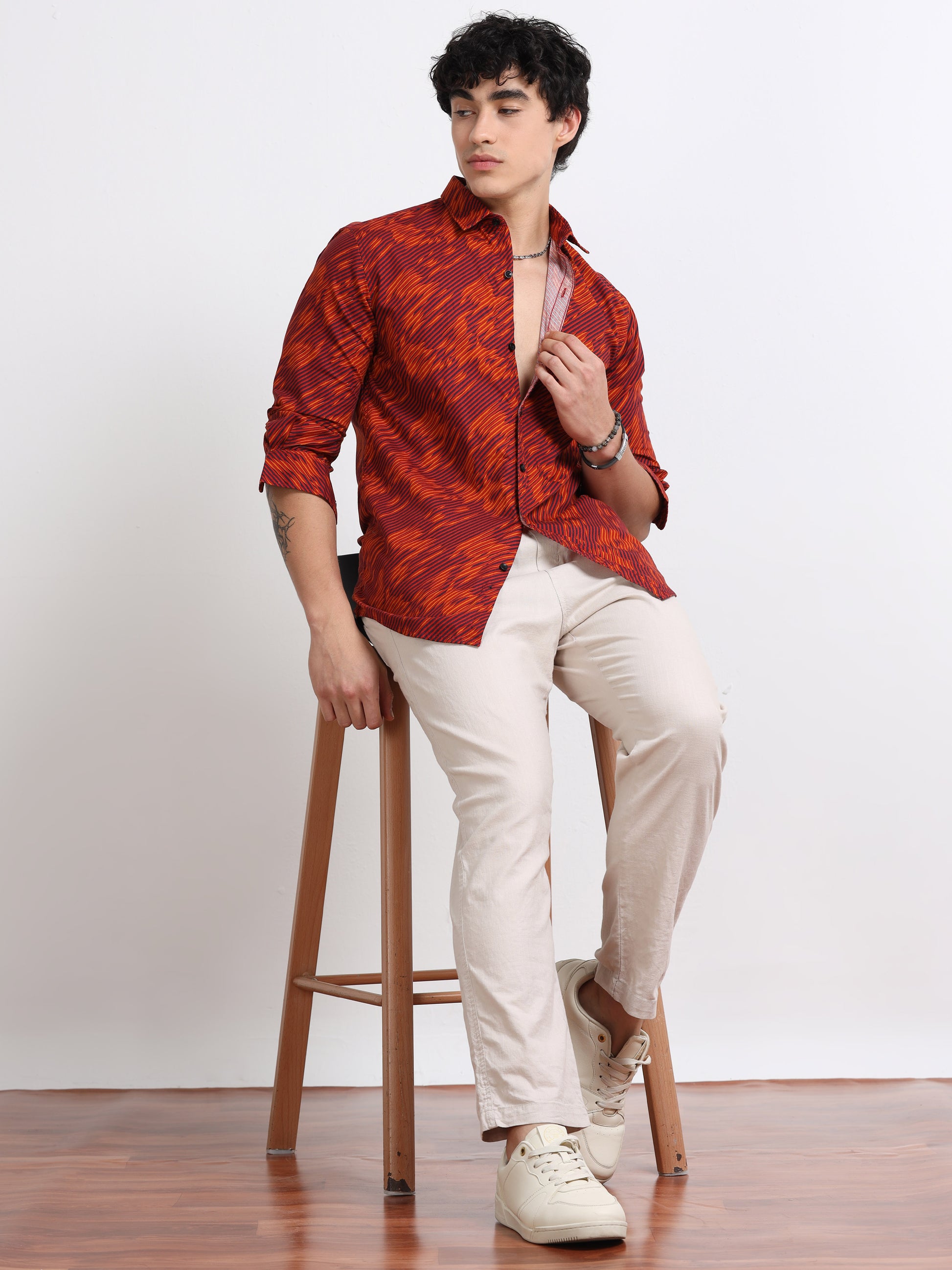 Men’s Rust Orange Abstract Printed Cotton Shirt by Black Thread