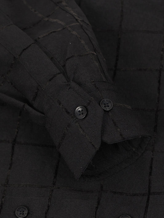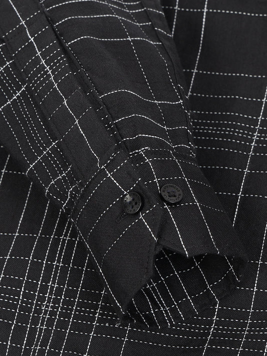 Black Men's Cotton Embroidered Checked Casual Shirt - Premium Comfort Fit