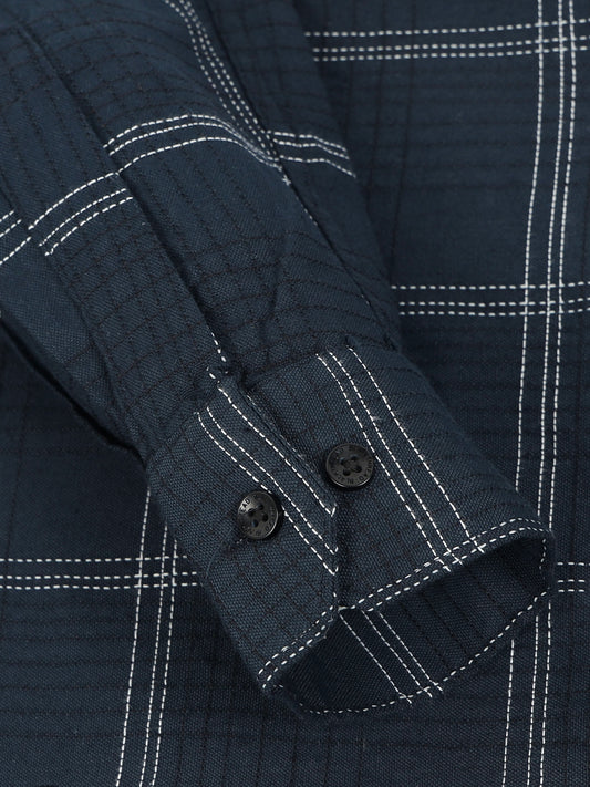 Dark Blue Men's Cotton Embroidered Checked Casual Shirt - Premium Comfort Fit