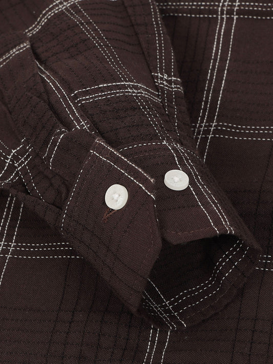 Dark Brown Men's Cotton Embroidered Checked Casual Shirt - Premium Comfort Fit