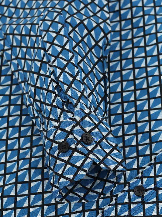 Men’s Blue Geometric Printed Cotton Shirt by Black Thread