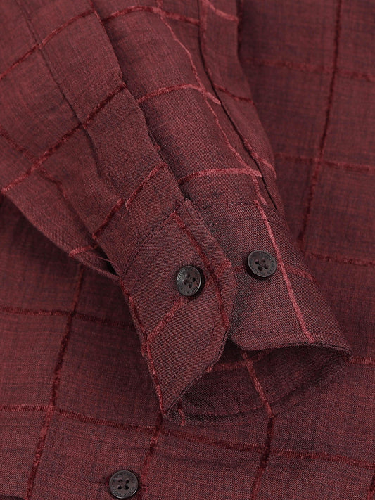 Maroon Men's Cotton Checks Design Casual Shirt - Premium Comfort Fit
