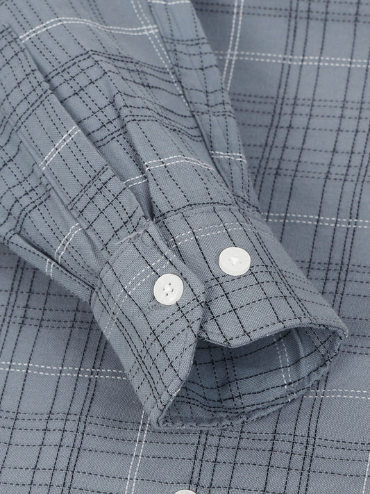 Grey Men's Cotton Embroidered Checked Casual Shirt - Premium Comfort Fit