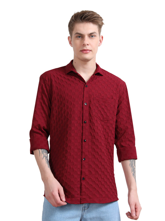 Men’s Maroon Micro Printed Slim Fit Casual Shirt By Black Thread