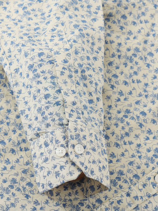 Men’s Cream & Blue Floral Printed Slim Fit Casual Shirt By Black Thread