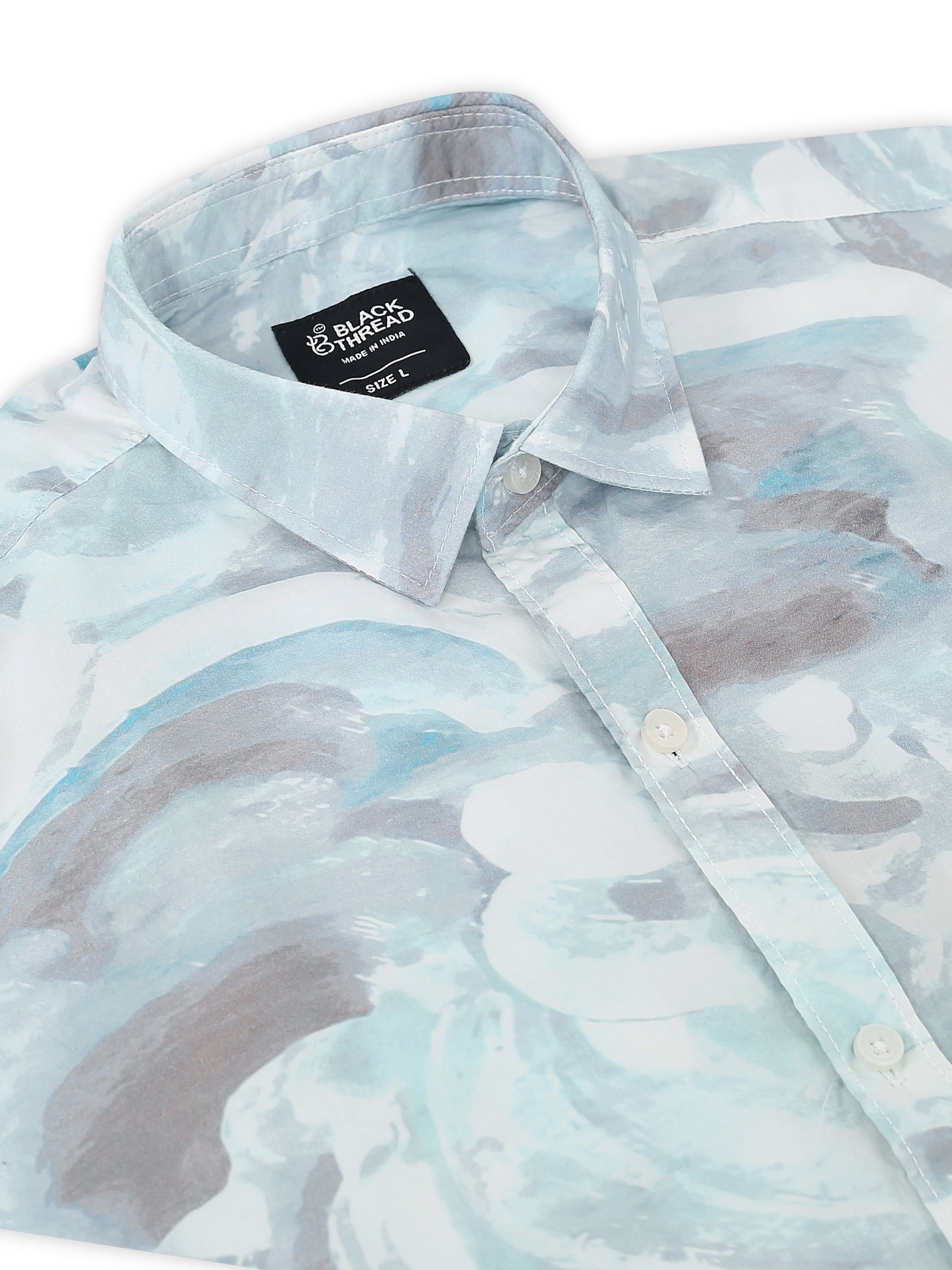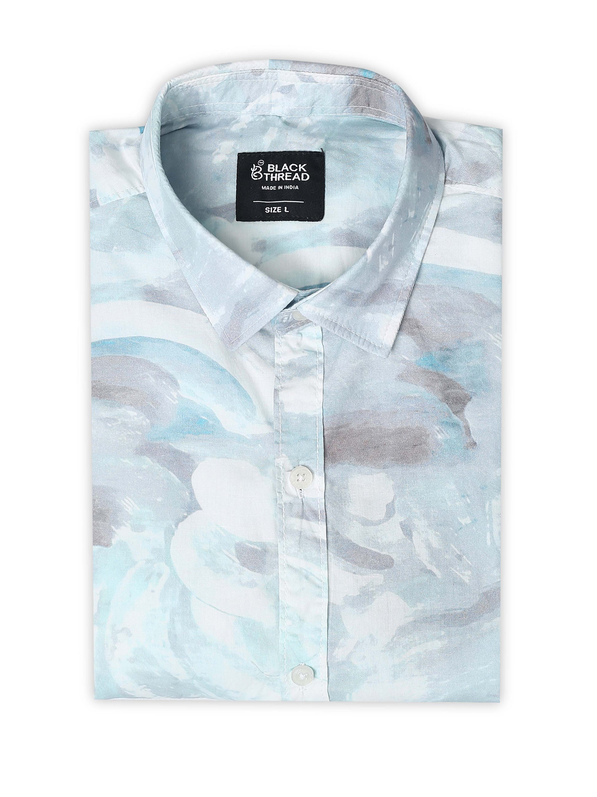 A relaxed, breezy vibe for any day — the White & Grey Tropical Breeze Cotton Shirt by Black Thread features soft pastel prints inspired by nature. Crafted in lightweight cotton, this shirt blends effortless comfort with island-inspired style.