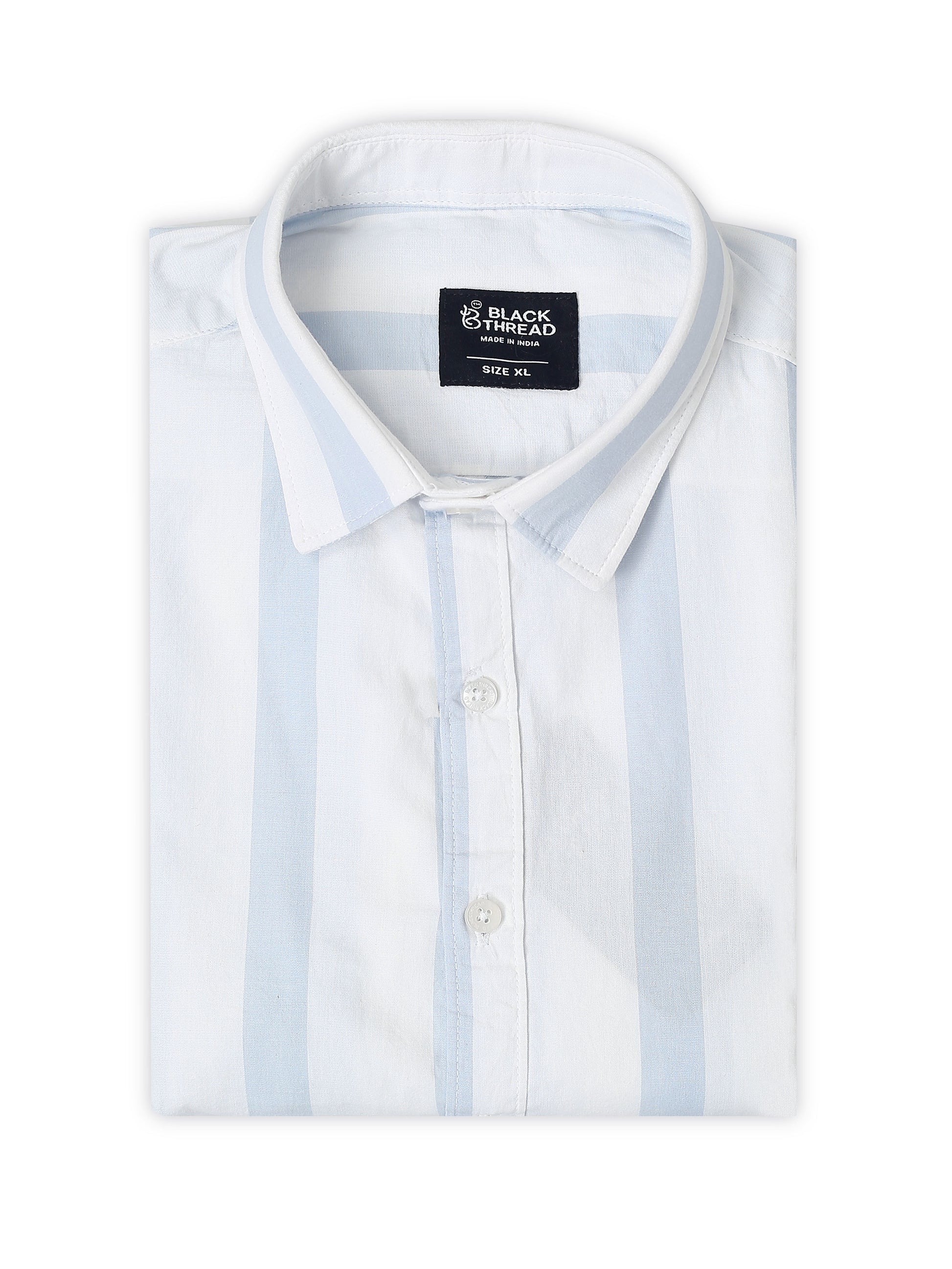 Classic never fades. The White & Sky Blue Stripe Cotton Shirt by Black Thread offers timeless elegance in a breathable cotton fabric. The vertical stripes create a sharp, slimming effect — making it your go-to for clean, refined looks.