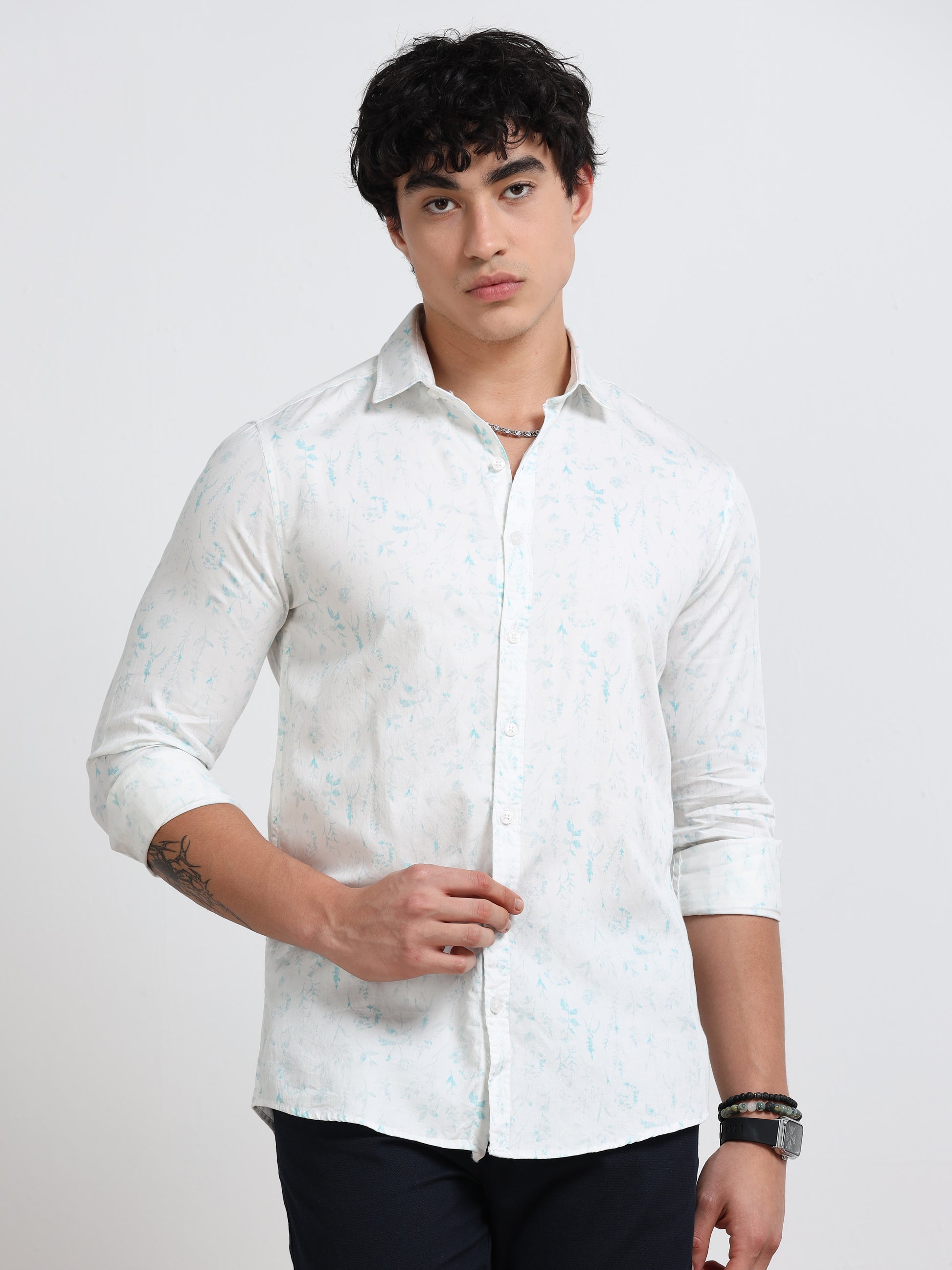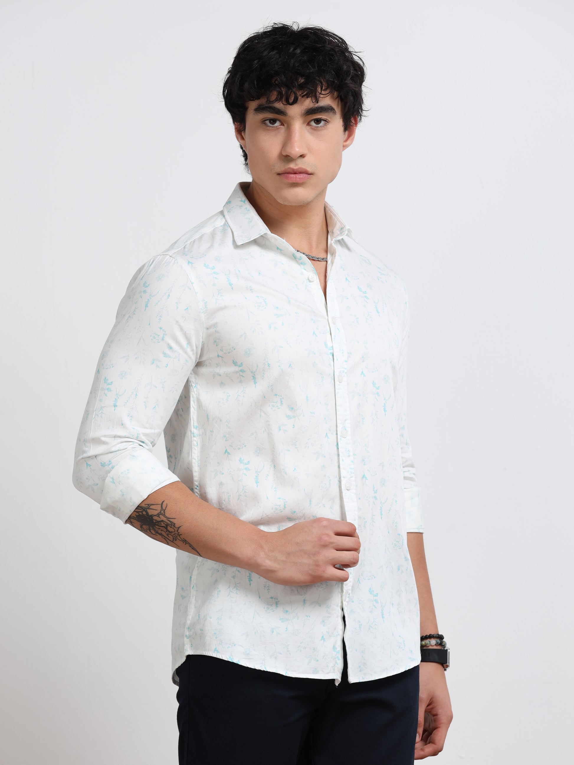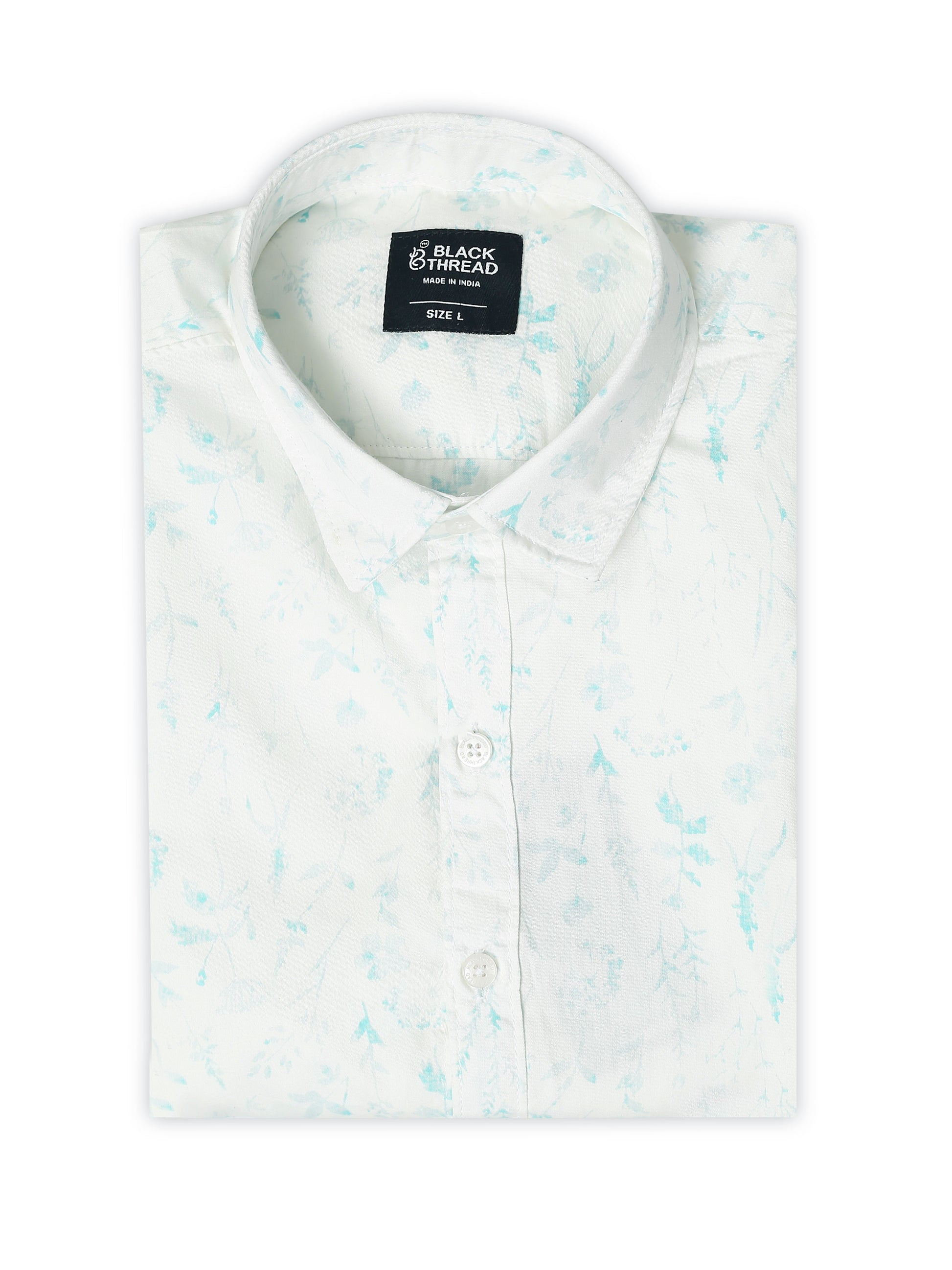 Minimal yet impactful — the White & Teal Printed Cotton Shirt by Black Thread is for those who appreciate subtle design. The crisp white base paired with delicate teal patterns creates a refined aesthetic perfect for any occasion.