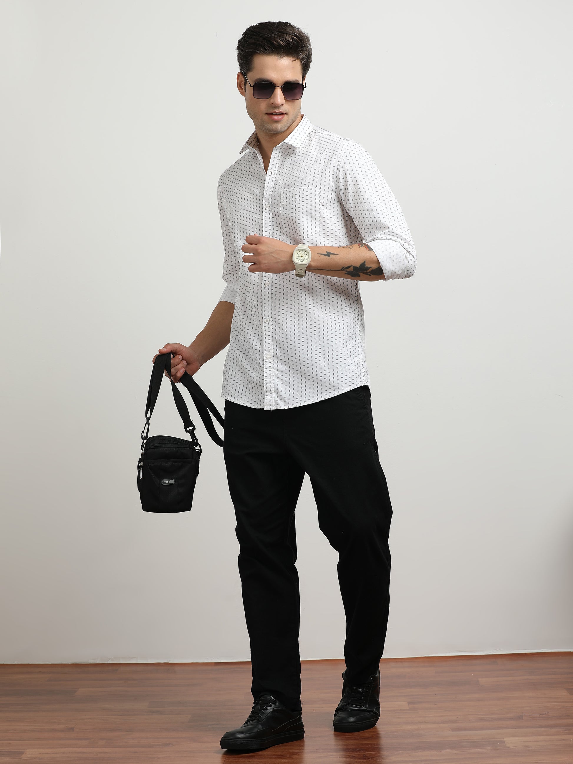 Men’s White Micro Printed Slim Fit Casual Shirt By Black Thread