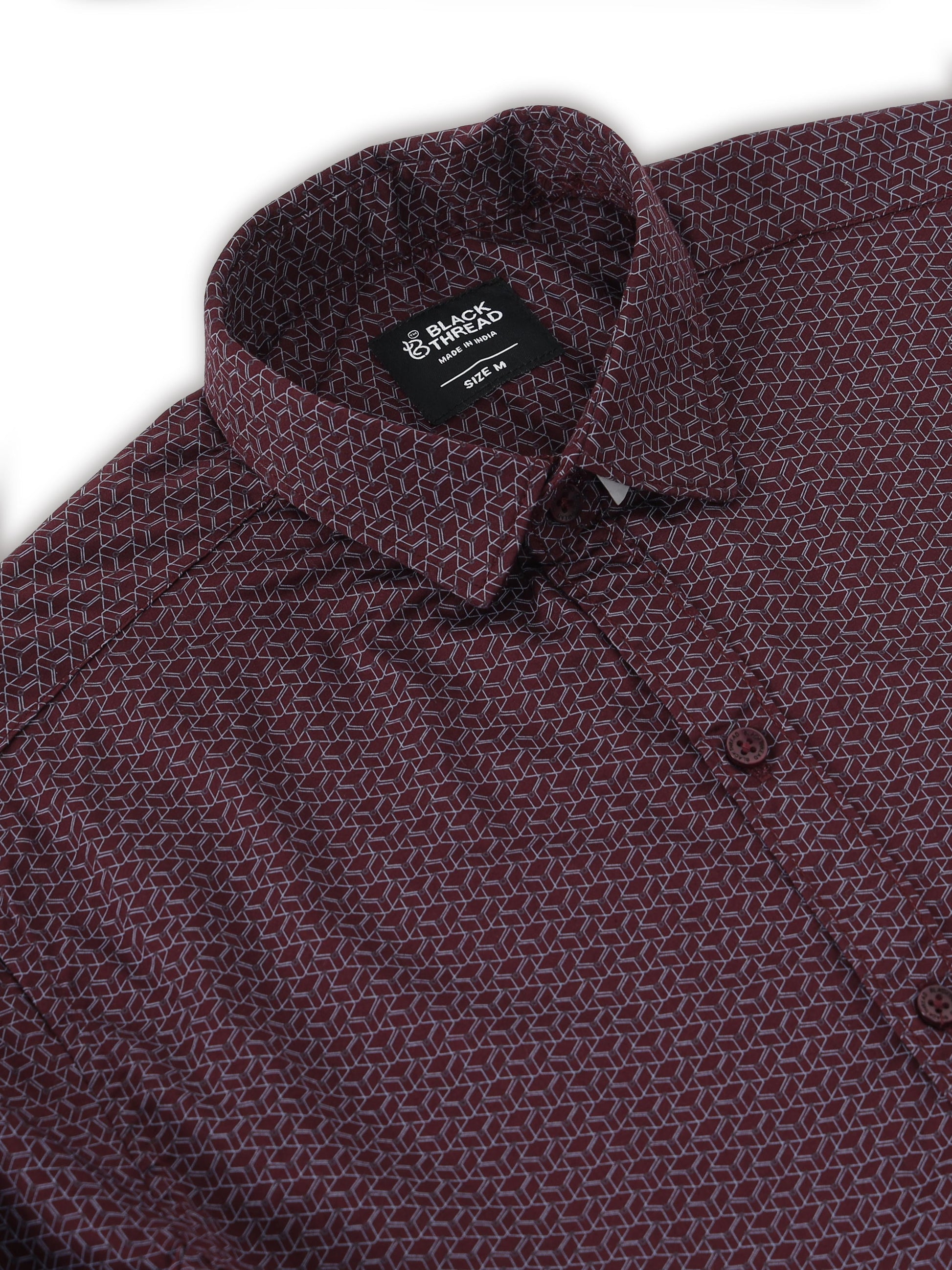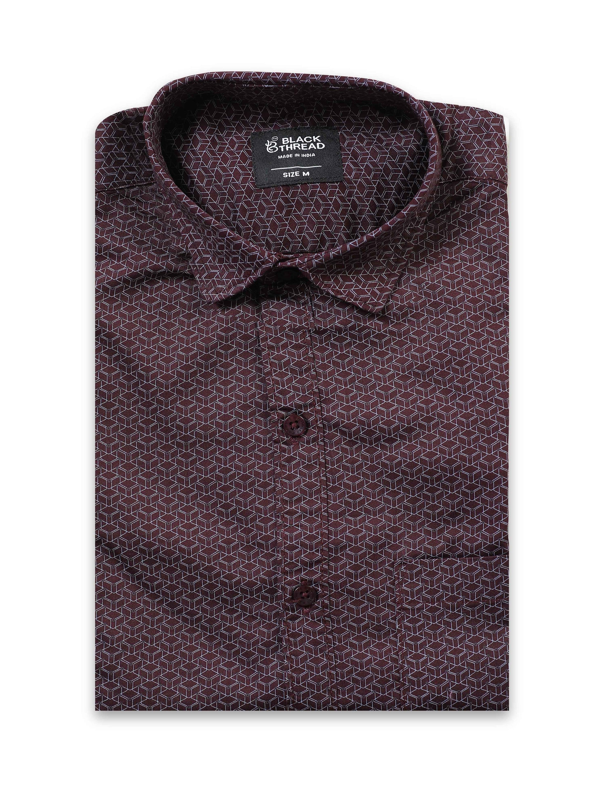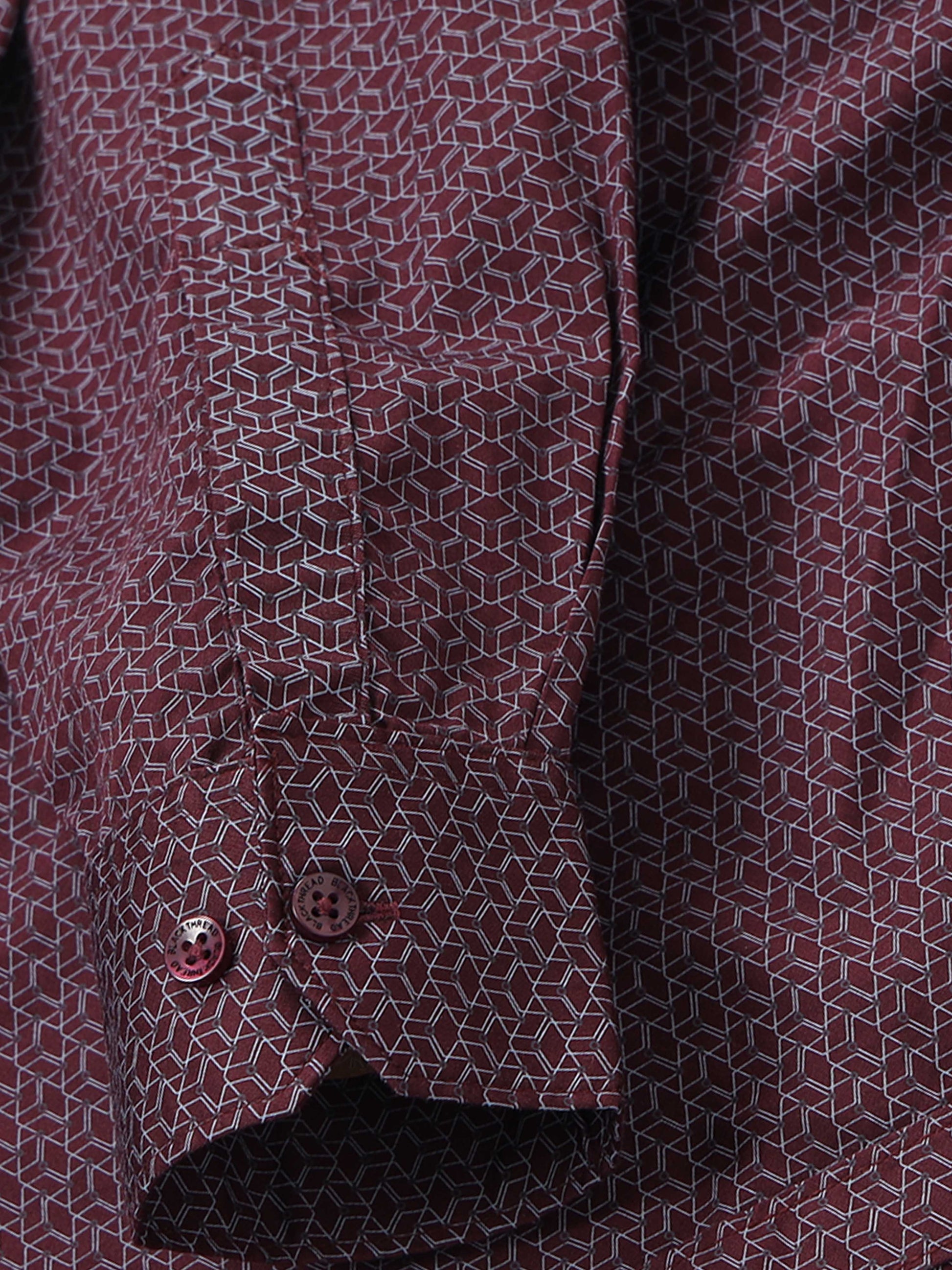 Men’s Wine Red Micro Printed Slim Fit Casual Shirt By Black Thread
