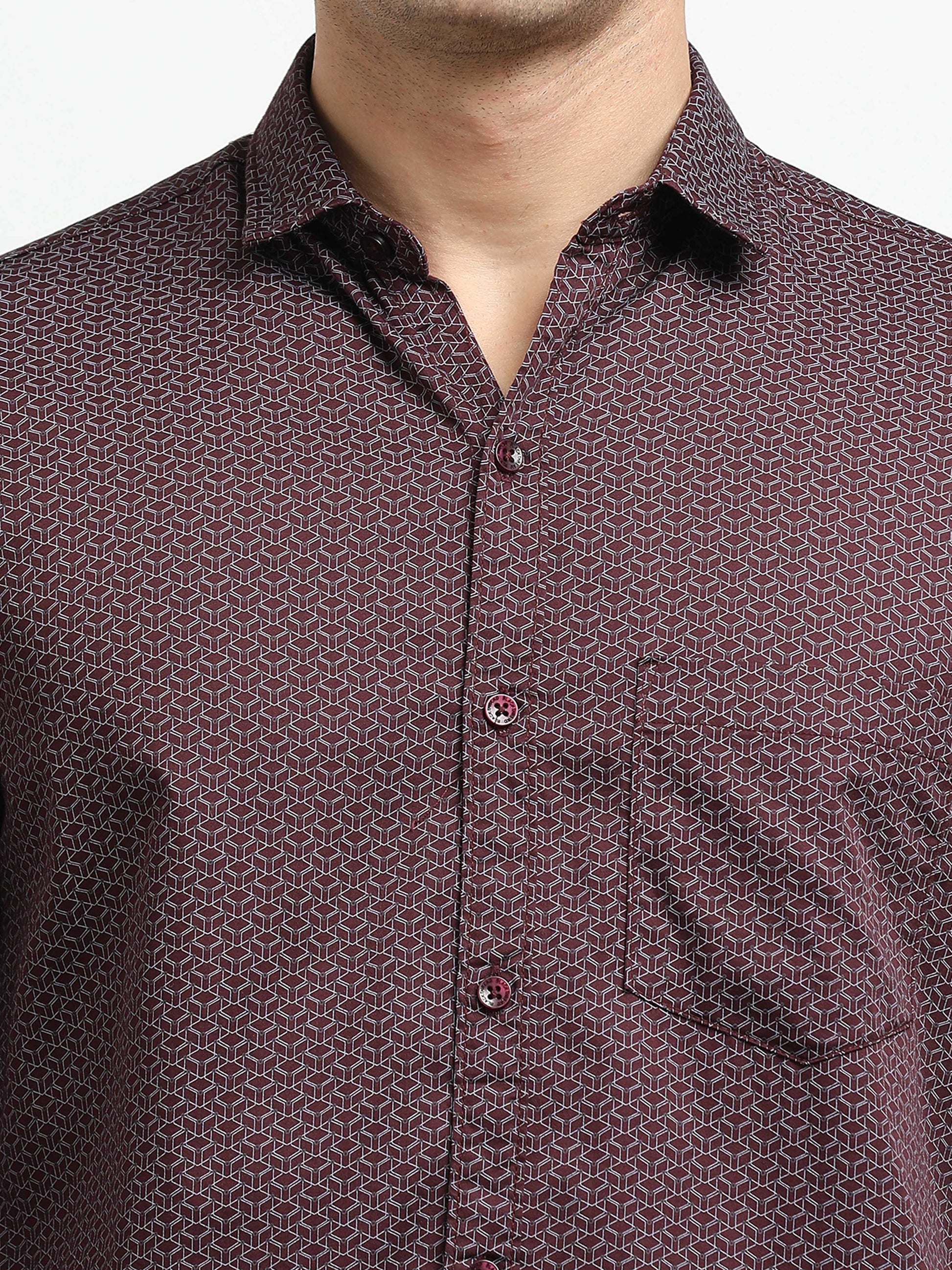 Sophisticated and stylish, this Men’s Maroon Patterned Cotton Shirt by Black Thread is the perfect balance of comfort and modern design. Crafted from premium breathable cotton, it ensures all-day ease while keeping your look sharp. The deep maroon base with an intricate micro-pattern gives it a classy yet trendy vibe. Featuring slim-fit tailoring, button-down front, and contrast roll-up cuffs, this shirt is versatile enough for both workdays and evening outings.
