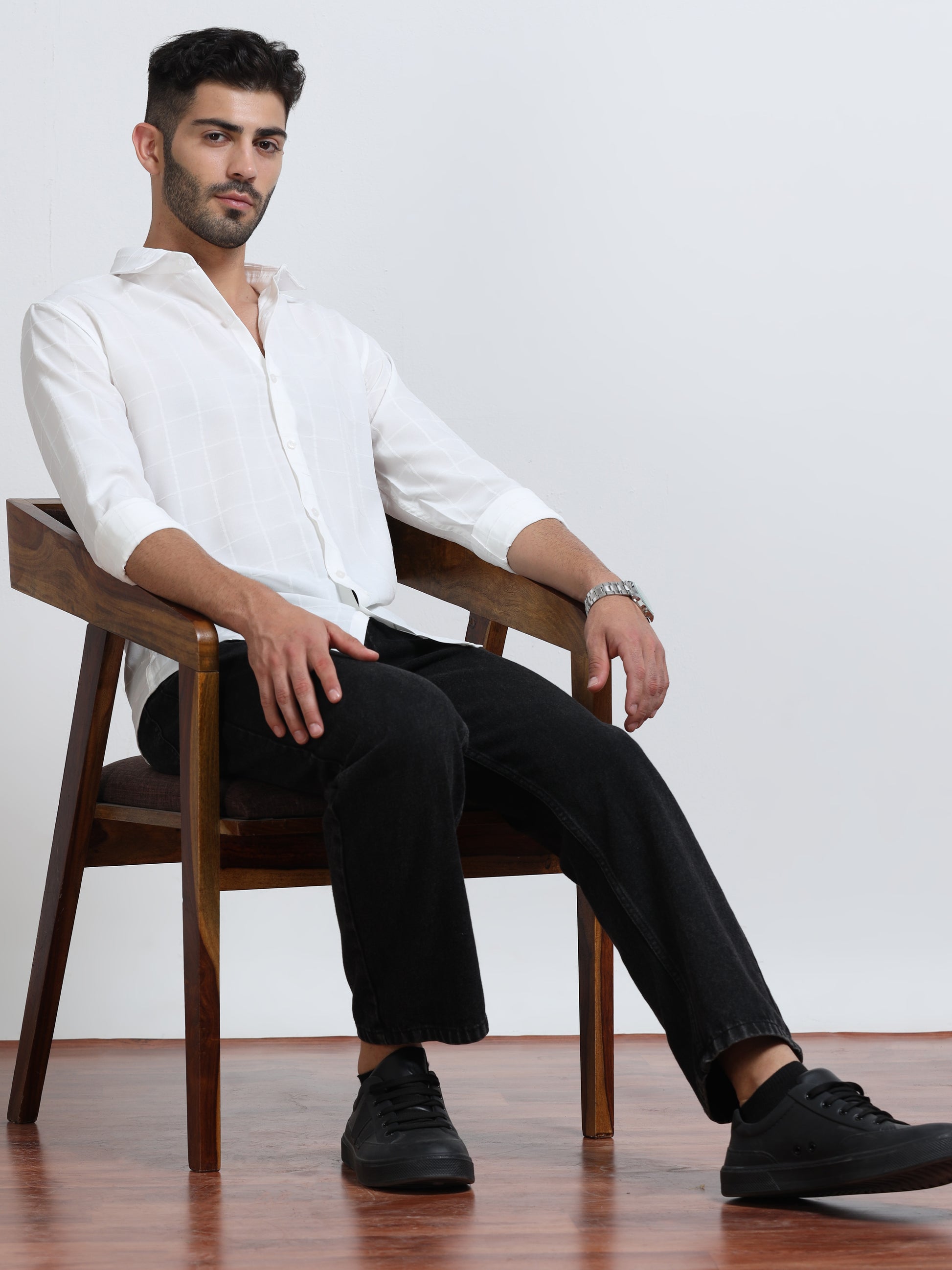 White Men's Cotton Checks Design Casual Shirt - Premium Comfort Fit