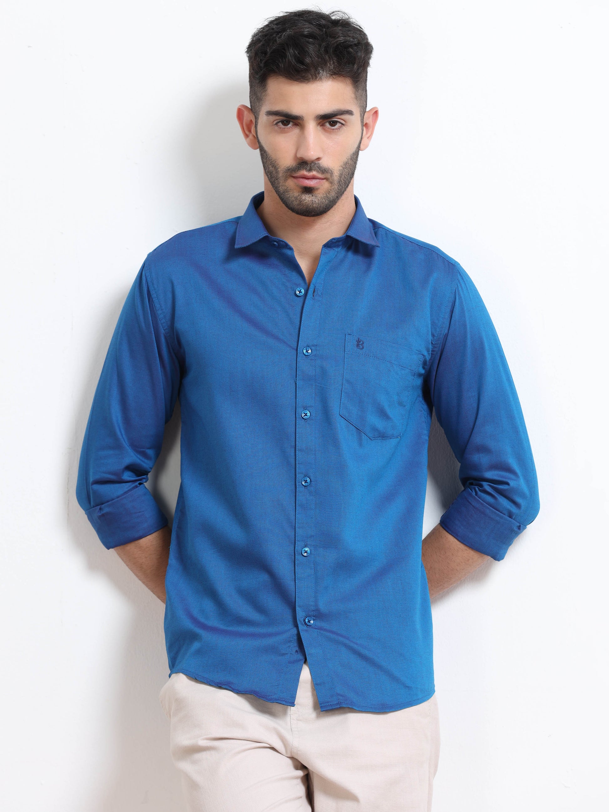 Experience refined versatility with this cotton designed casual shirt. The contemporary design offers a sophisticated yet approachable look, perfect for creating a polished professional appearance.