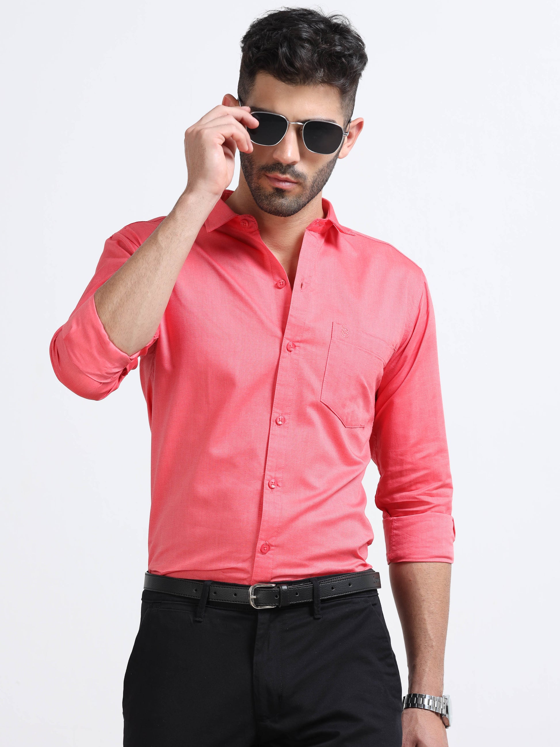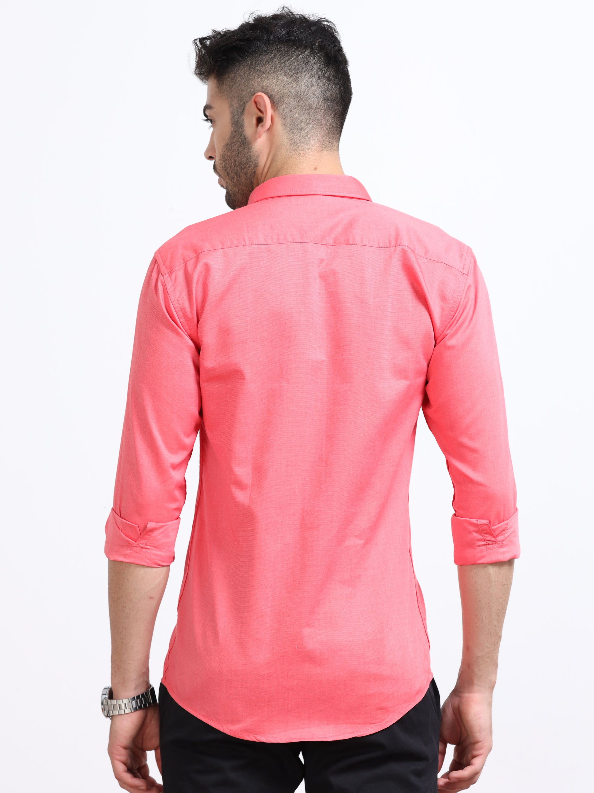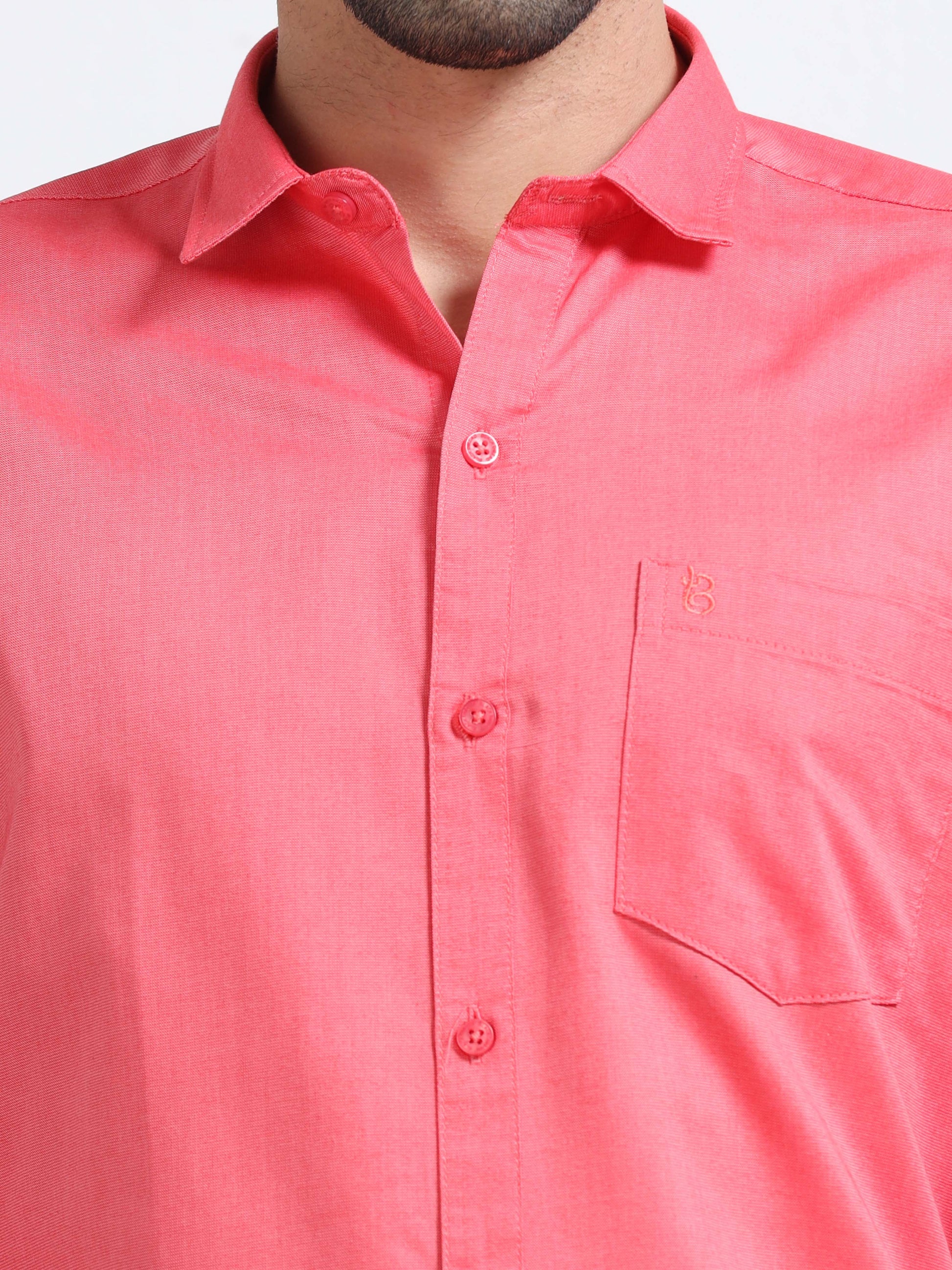 Pink Men's Cotton Plain Casual Shirt - Premium Comfort Fit