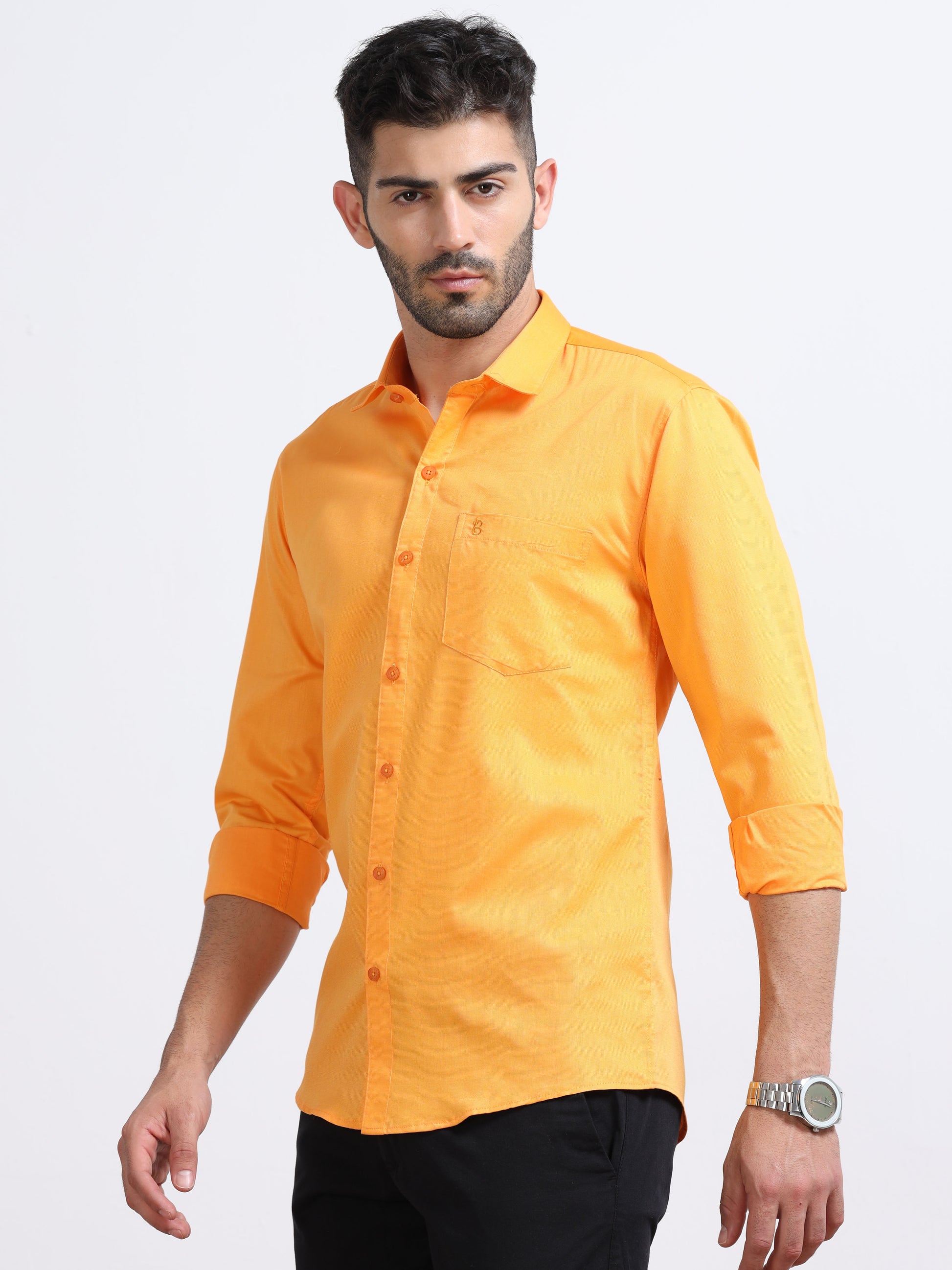 Mustard Yellow Men's Cotton Plain Casual Shirt - Premium Comfort Fit
