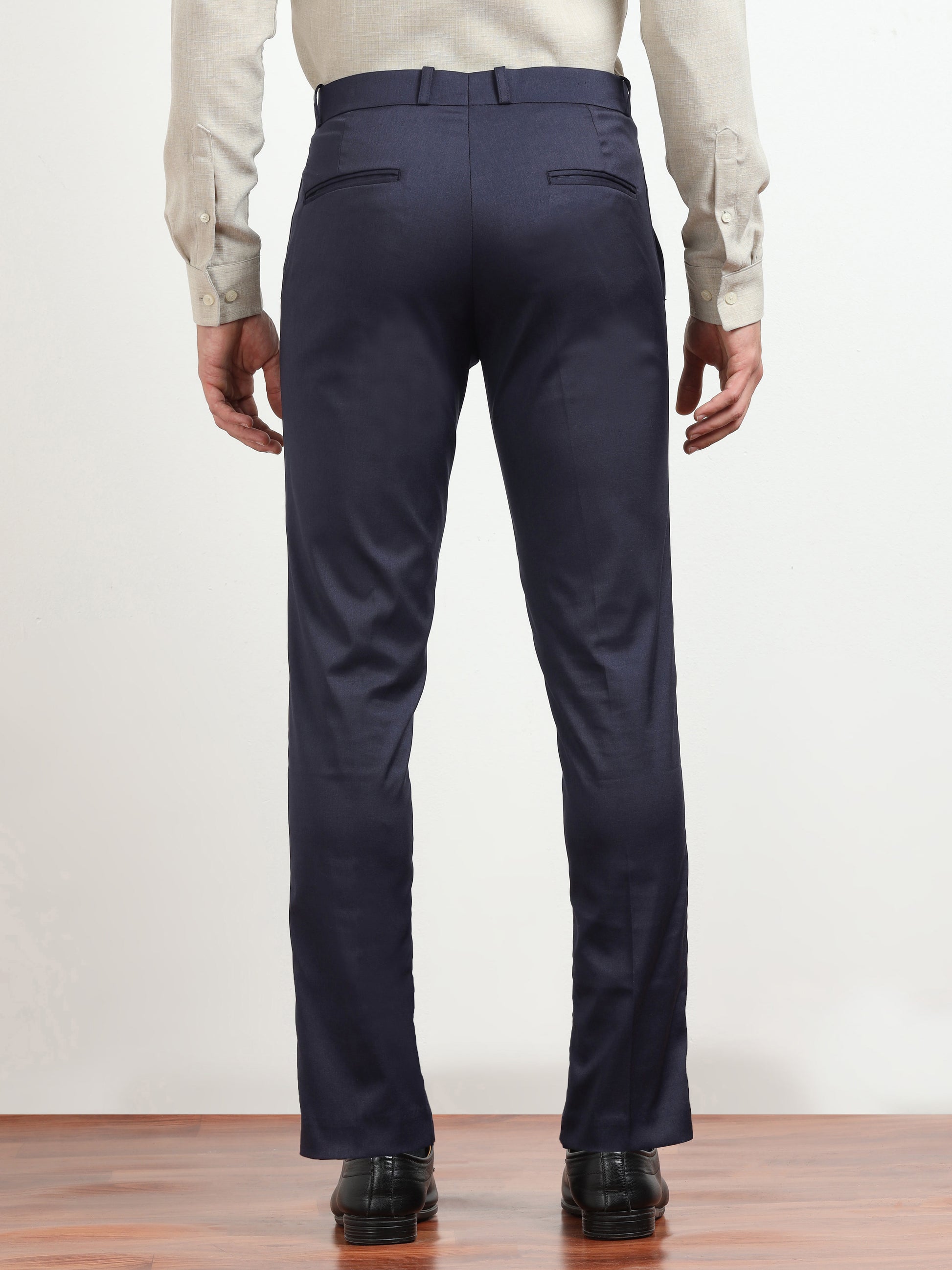 Men's Navy Blue Formal Regular Fit Trousers